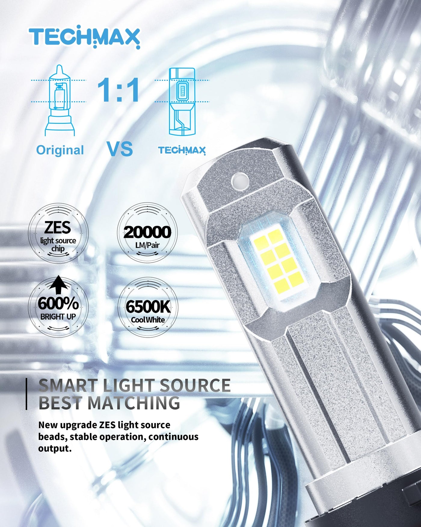 Q: How bright is the TECHMAX 9005 fog light bulb compared to standard bulbs?A: The TECHMAX 9005 fog light bulb is 600% brighter than standard bulbs, thanks to its newly upgraded ZES light source chip, providing an extreme white light of 6500K.