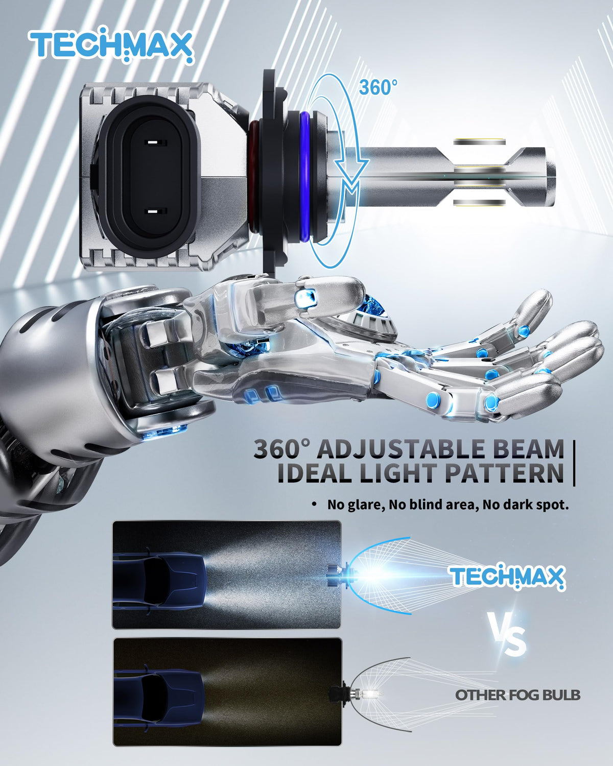Q: Can I adjust the light angle of the TECHMAX 9012 Fog Light Bulb?A: Yes, the bulb includes a 360° adjustable retaining clip design, allowing you to easily rotate the bulb to achieve the best lighting angle for optimal visibility.