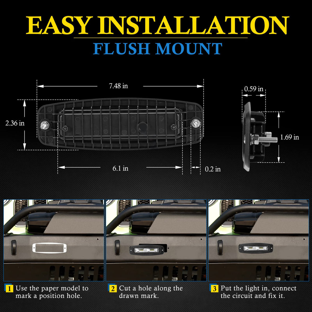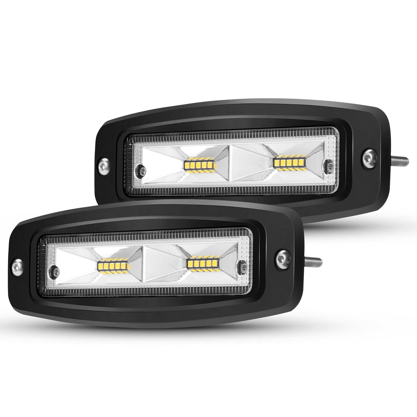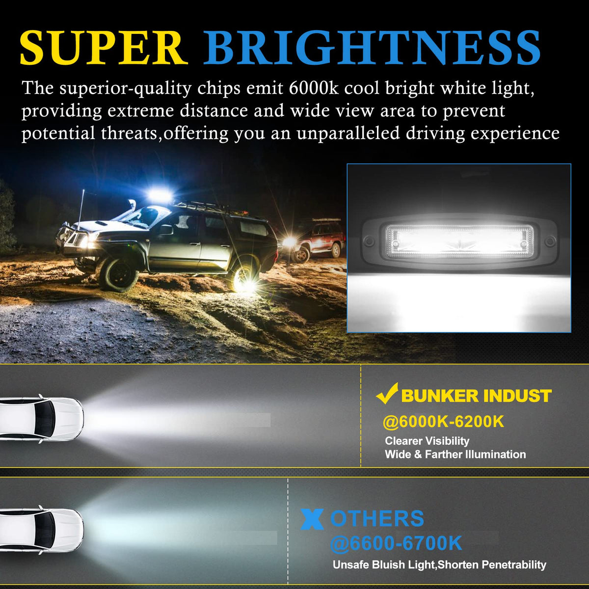Bunker Indust 7'' Inch Flood Led Light Pods,Pair Flush Mount Led Work Light 4800Lm Light Bar Backup Driving Lights Waterproof Fo