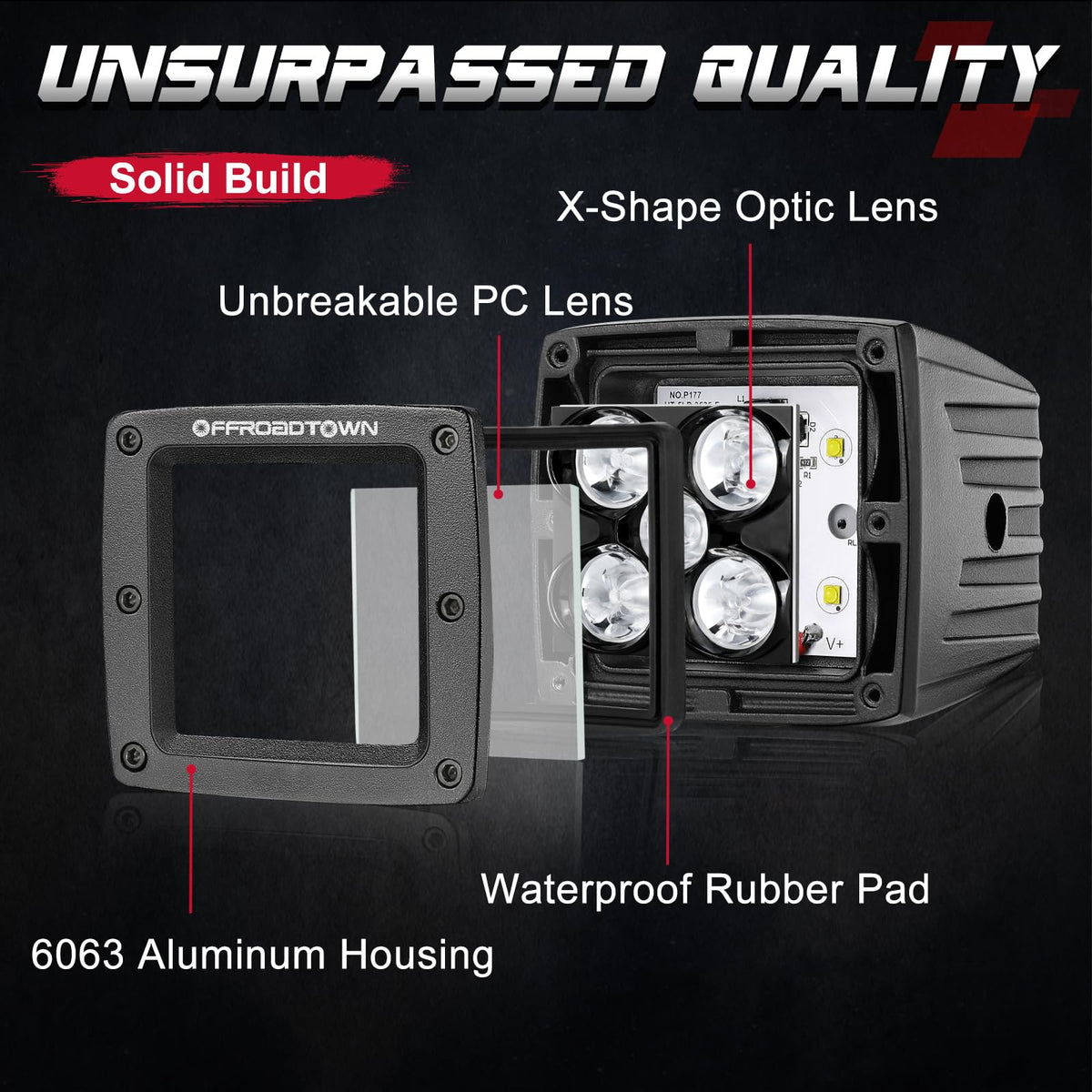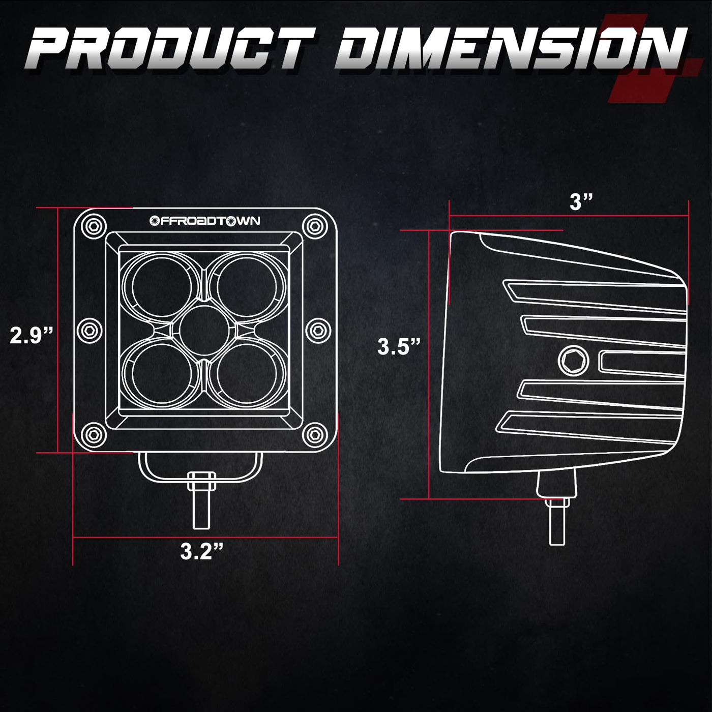 OFFROADTOWN 3 inch LED light pods adopting advanced ion crystal lens is hard to break. 6063 Aluminum Alloy housing lets it be used longer whose lifespan is up to 50,000 hours. As a compact fluorescent work light, it outputs brilliant light with 100W&10000LM but consumes little power.