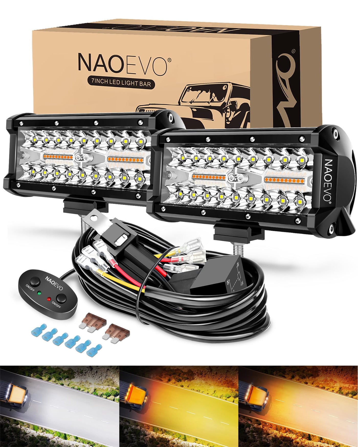 Naoevo 7 Inch Light Bar, 240W 24,000Lm Offroad Fog/Driving Lights Led Pods With 2 Leads Wiring Harness, Spot Flood Combo Led Wor