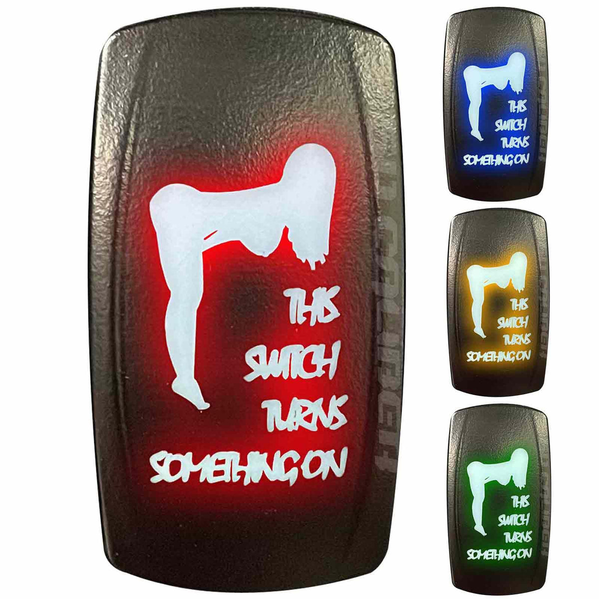 p>50 Caliber Racing Illuminated On/Off Rocker Switch with laser etched design - 'This Switch Turns Something On'