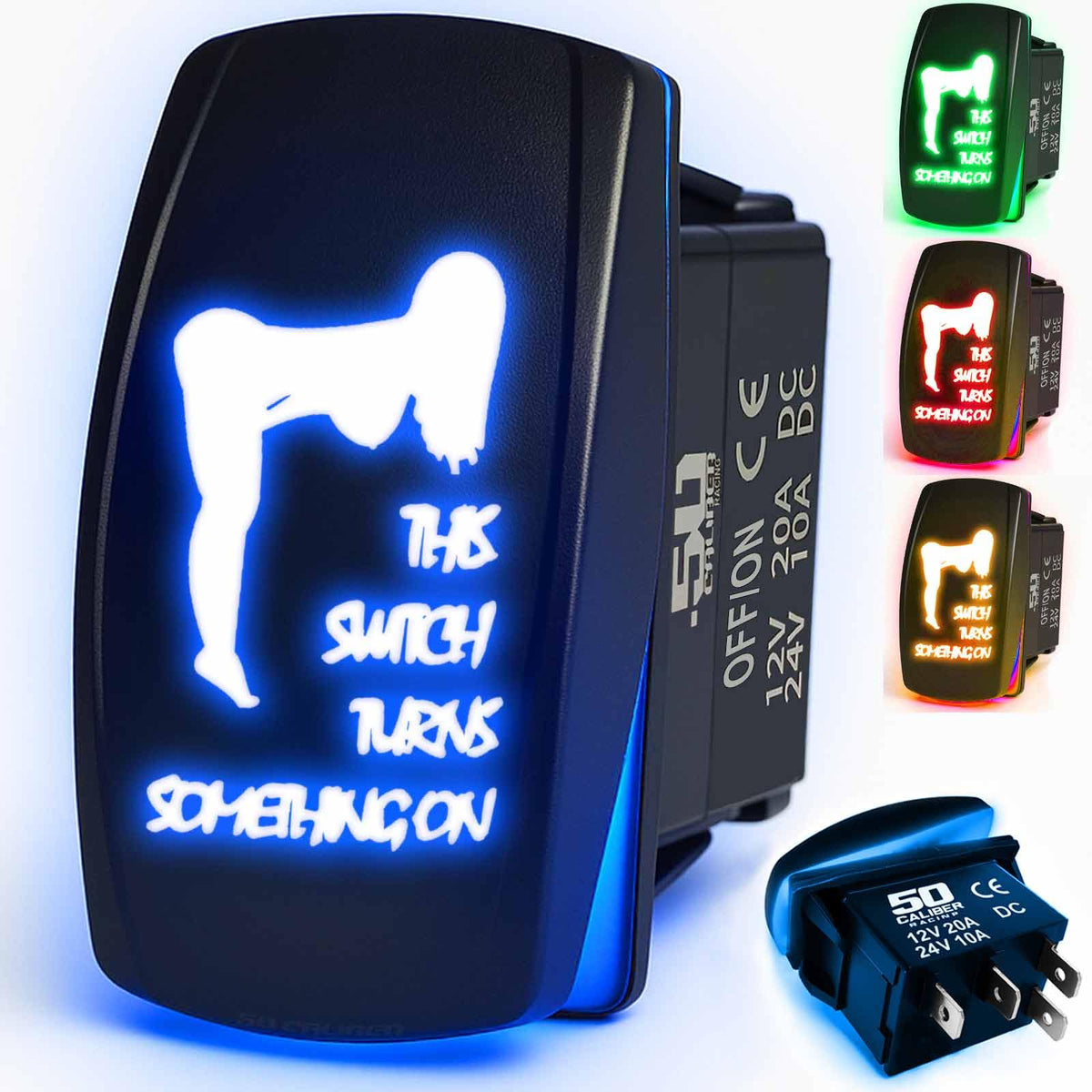 50 Caliber Racing ON/OFF Waterproof Rocker Switch, LED Backlit with Custom Etched Sexy Girl Design