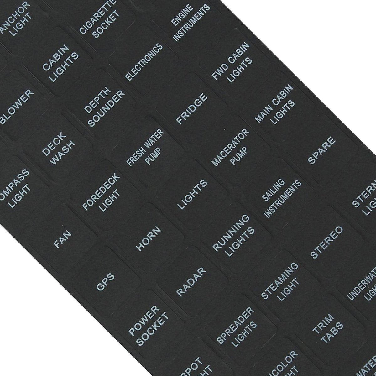 Included: ACCESSORY;AERATOR,ANCHOR LIGHT,AUTO PILOT;BAIT TANK PUMP;BILGE PUMP;BLOWER;CABIN LIGHTS;CIGARETTE SOCKET;COCKPIT LIGHTS;COMPASS LIGHT;DECK WASH;DEPTH SOUNDER;ELECTRONICS;ENGINE INSTRUMENTS;FAN;FOREDECK LIGHT;FRESH WATER PUMP;FRIDGE;FWD CABINE LIGHTS;GPS;HORN;LIGHTS;MACERATOR PUMP;MAIN CABIN LIGHTS;POWER SOCKET;RADAR;RUNNING LIGHTS;SAILING INSTRUMENT;SPARE;SPOT LIGHT;SPREADER LIGHTS;STEREO;STERN LIGHT;STROBE LIGHT;TRICOLOR LIGHT;TRIM TABS;UNDERWATER LIGHTS;USB SOCKET;VHF;VOLTMETER SOCKET;WATER PRESSURE;WINCH;WIPER Specification: Whole Size: about 170mm(L) x 90mm(W) Each decal size: about 15mm(L) x 15mm(W) Package included: 2 Set Instrument Panel Decals (90pcs) Note: 1. Please check the size measurement chart carefully before making payment 2. Please allow 0.5-1 inch difference due to manual measurement 3. The color of the actual items may slightly different from the listing images due to different computer screen; thanks for your understanding
