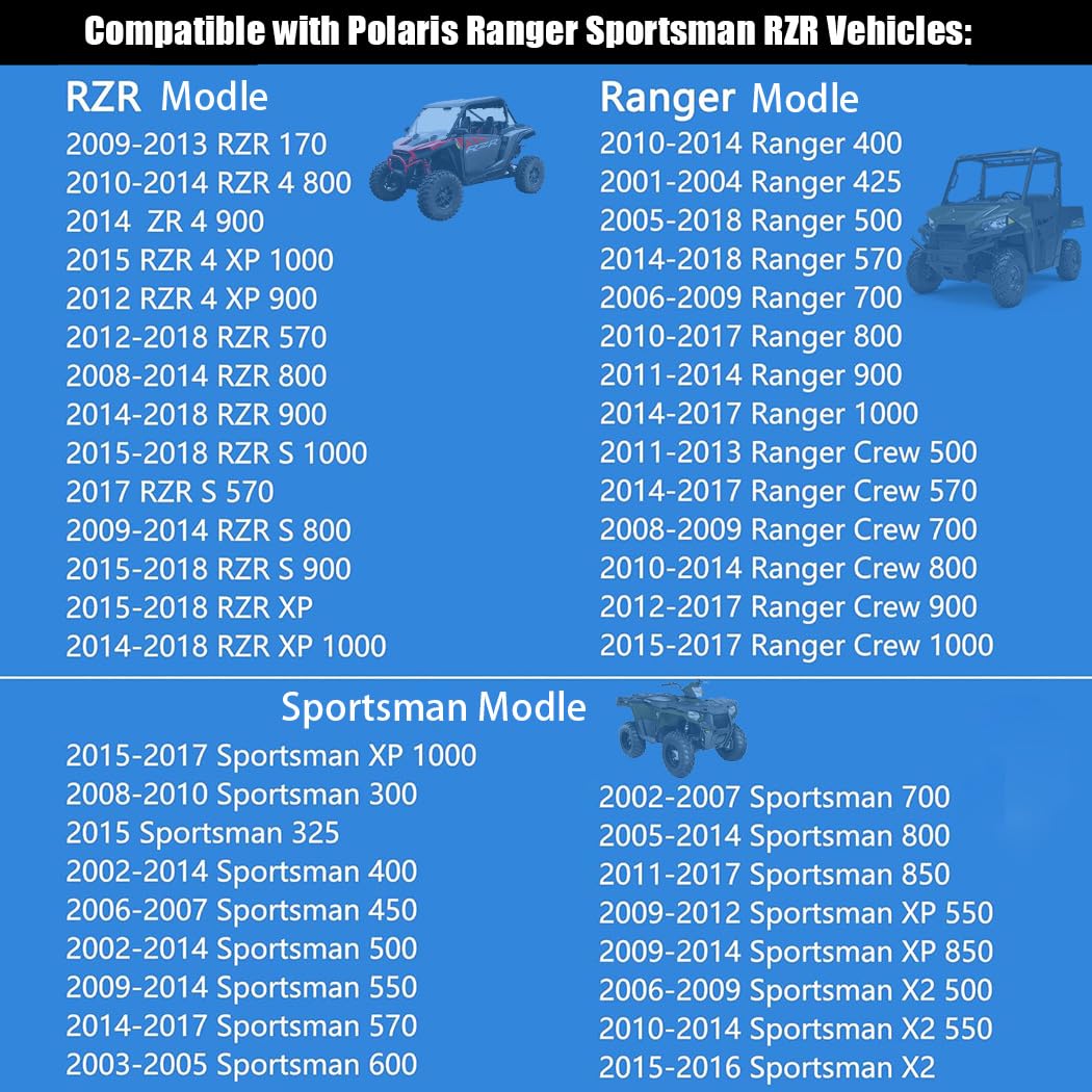 Q: What models is the Ignition Key Switch compatible with?A: The Ignition Key Switch is compatible with a wide range of Polaris models including the Ranger 400 (2010-2014), Ranger 570 (2014-2018), Ranger 800 (2010-2017), Sportsman XP 1000 (2015-2017), and various RZR models from 2009 to 2018. Please refer to the product description for a full list of compatible models.