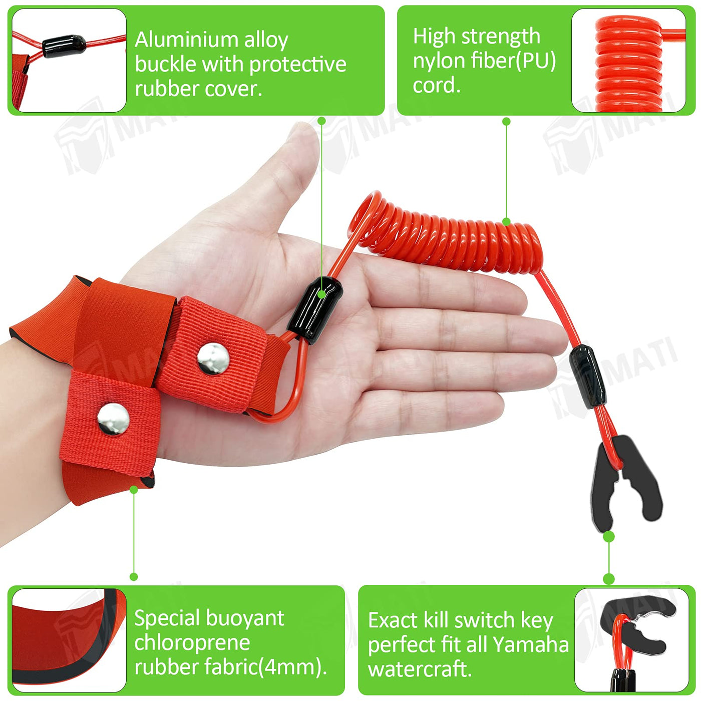 Q: How does the rubber protection design enhance safety during use?A: The rubber protection design on the buckle of the M MATI Stop Kill Switch Safety Lanyard prevents injury when the buckle rebounds. This thoughtful feature ensures that users can operate their Jet Skis safely without the risk of getting hurt.