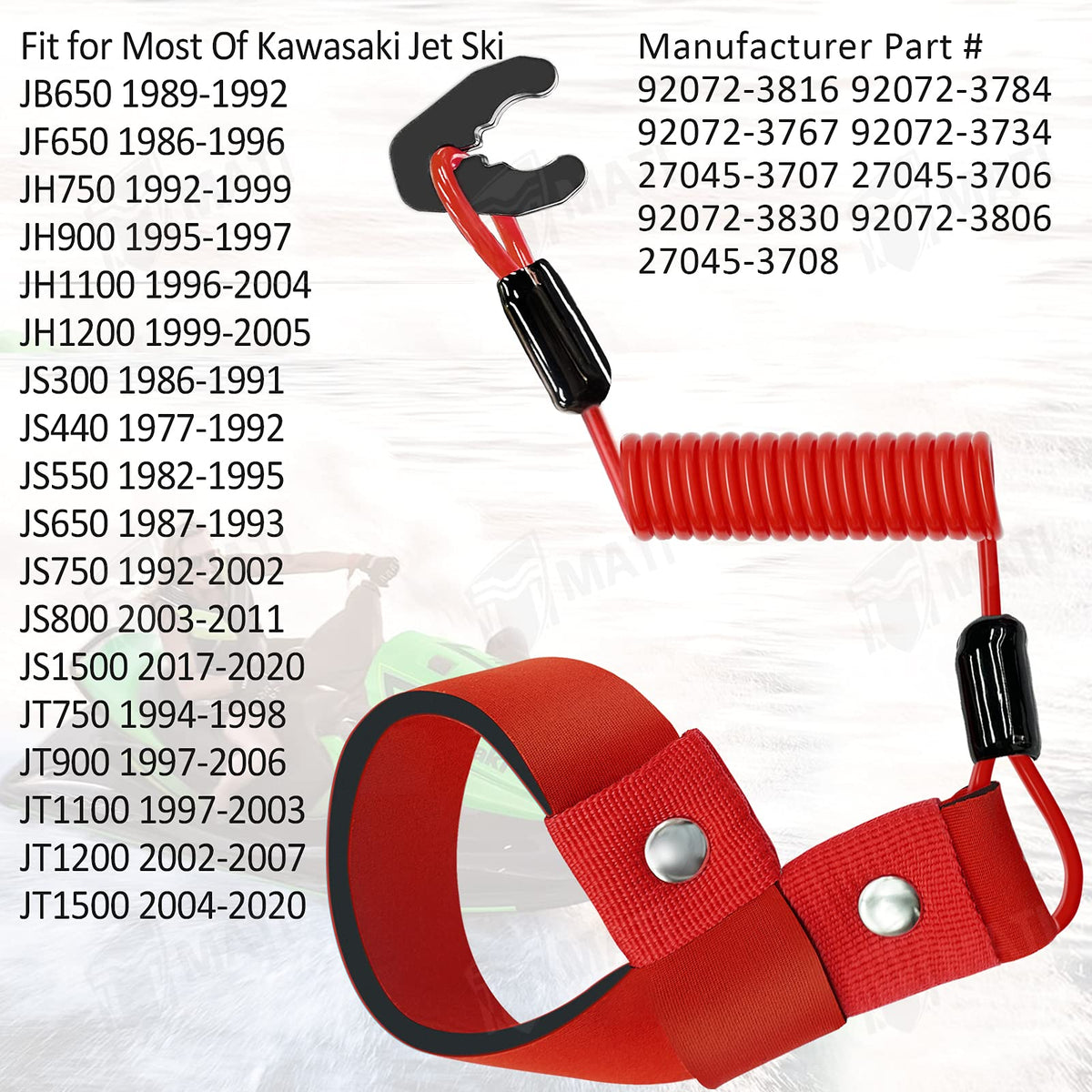 M Mati Stop Kill Switch Safety Lanyard Band Tether For All Kawasaki Jet Ski Js Jt Jh Jb Jf 300 440 550 650 750 800 900 1100 1200 1500 92072-3809