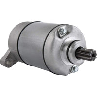 Q: What are the specifications of this Polaris starter?A: The starter has a voltage of 12 Volts, a clockwise rotation, and features 9 teeth/splines. The pinion/splines outer diameter is 14.2 mm (0.559 in), and it includes two unthreaded mounting holes with a diameter of 6.8 mm.