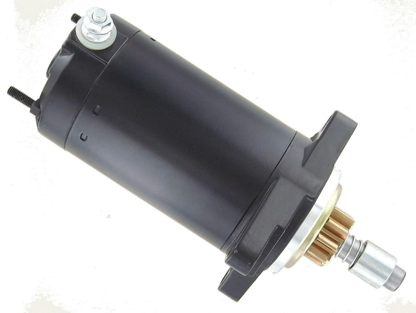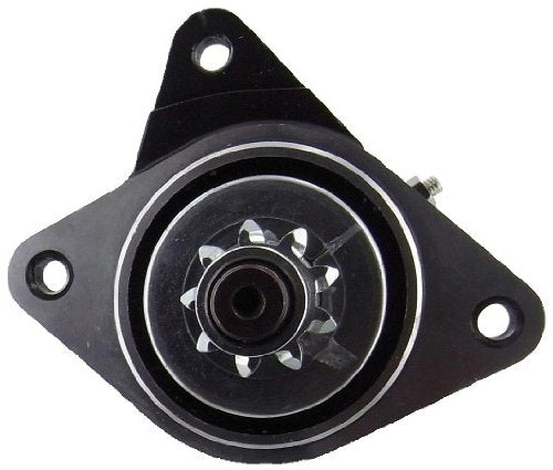 Q: What are the specifications of this starter motor?A: The starter motor features a PMDD type, 12 volts voltage, 9 teeth/splines, a counter-clockwise rotation, and weighs approximately 5.22 lbs (2.37 kg). It also has three M8-1.25 ID threaded mounting holes.