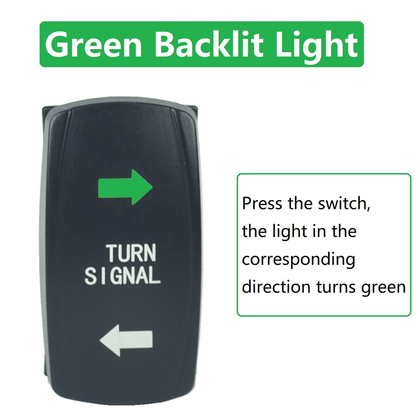 ?Fitment: Universal motor Internal switch for ATV UTV RV Boat Off-Road Truck Tractor Motorcycle; Compatible with Golf Cart Polaris Ranger RZR SXS, ect; ?Specifications: Pin: 4Pin LED Color: Green Waterproof: IP67 Panel Symbol: Turn Signal Switch Function: ON OFF ON Mounting Hole Size: 3.72x2.12 cm Flasher: DOP-3X Flasher for LED 12v max:240w ?Package Included: 1 x Turn Signal Rocker Switch 1 x Flasher 8 x Spade Wire Terminals ?1-year Warranty
