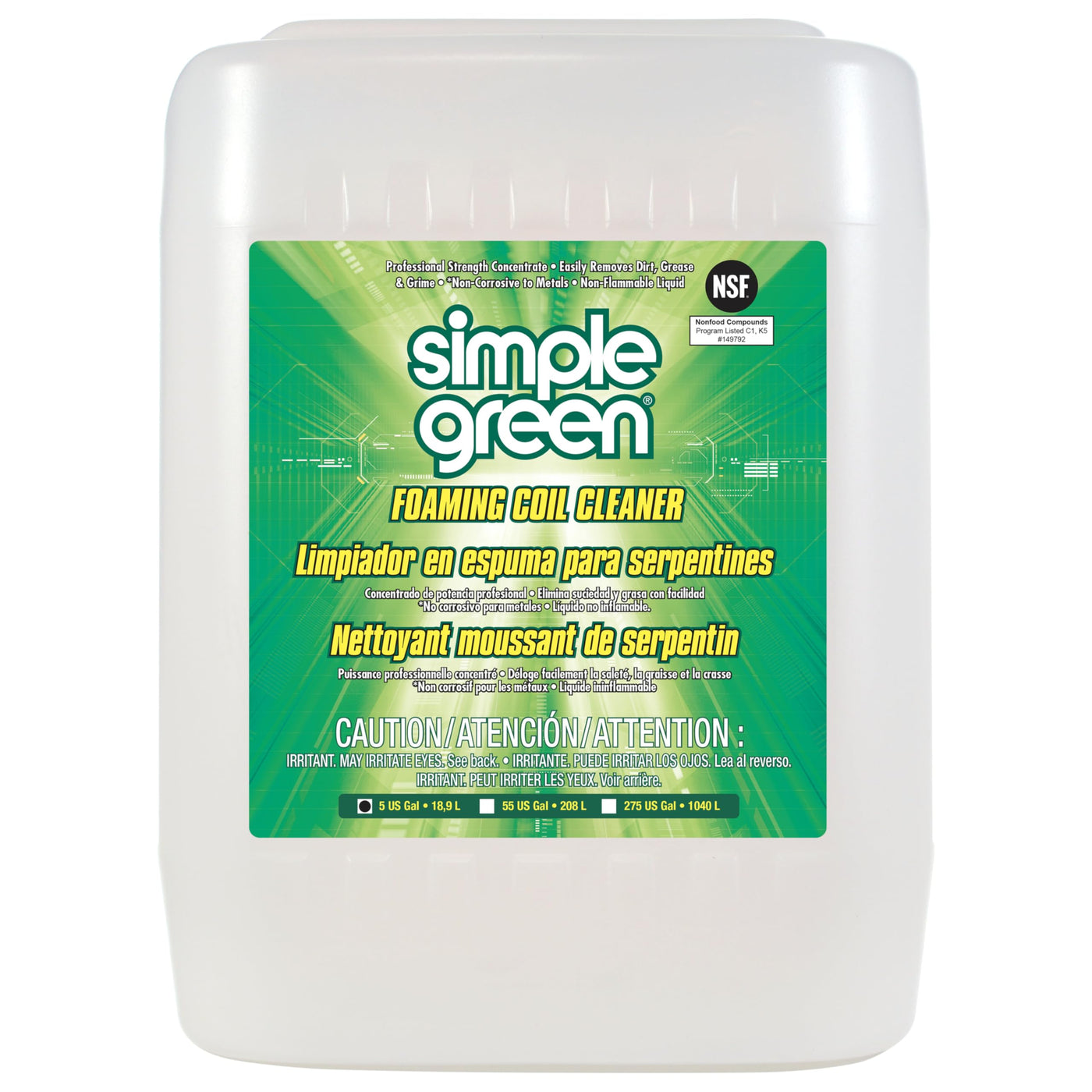 Simple Green Foaming Coil Cleaner powers away tough grease and grime. The professional-strength formula quickly penetrates to remove dirt and grease that can cause clogs, impede heat transfer, or prevent optimum equipment performance. When sprayed under pressure, the non-caustic and non-flammable foam clings to even the most hard-to-reach areas. Its self-rinsing on condensate-producing coils, making application quick and simple. This formula contains no added color or scent and is NSF registered C1 and K5, making it ideal for use in food processing facilities.