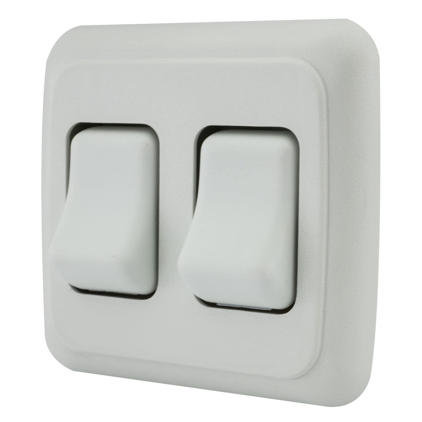 Double Spst On-Off Switch With Bezel, 12-Volt, For Rv, Trailer, Camper (White)
