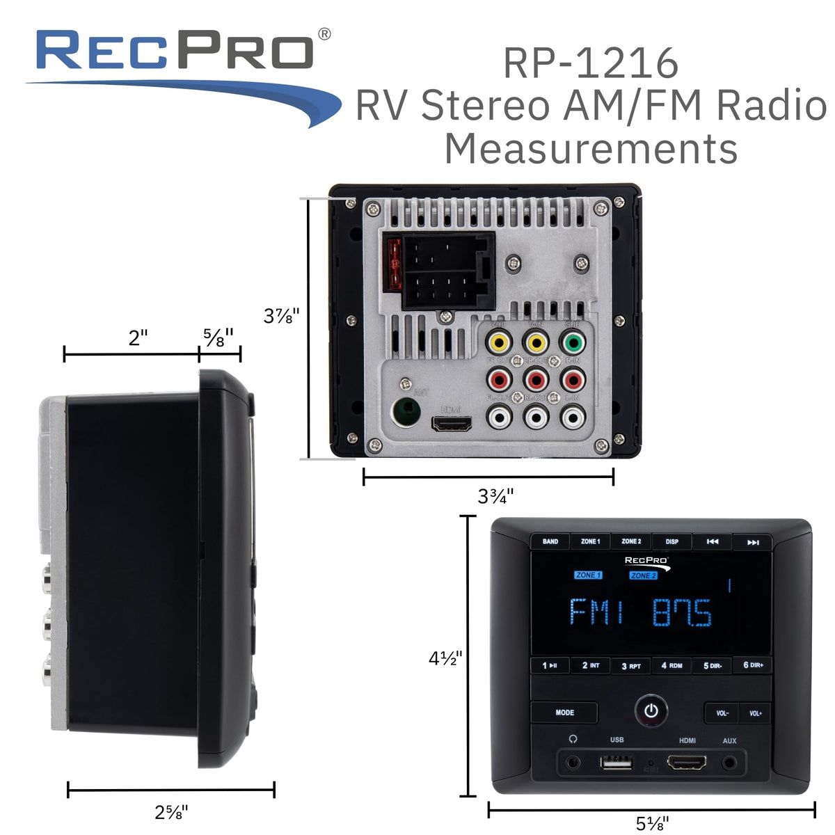 RecPro RV Stereo AM/FM Radio with Bluetooth | Aux-in | HDMI | 4-Channel Audio | 2 Zones | RV Sound System