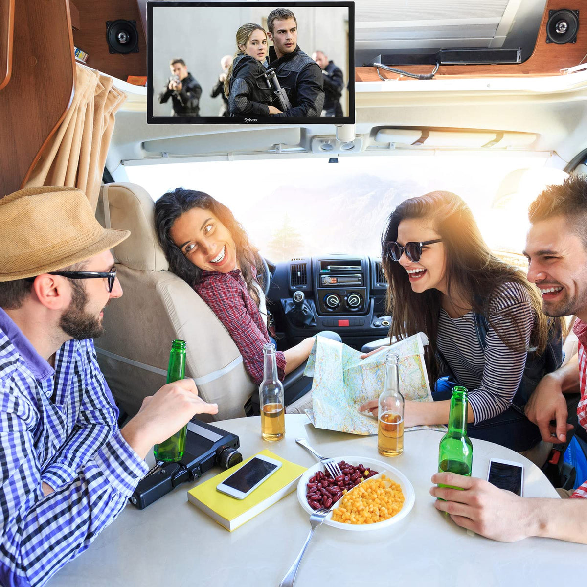 1.SYLVOX 27inch DC flat-screen TV, built-in Digital Video Disc player, with a base, and high-resolution digital noise, suitable for RVs travel and home use.2. 12Volt TV: 10.5V~28V full range wide voltage protection, which can effectively deal with the influence of unstable power supply voltage in the car on the RV TV when the RV starts and stops. Support DC voltage 12v/24v power supply, or use the attached adapter to connect to a home AC voltage 110v power supply.With anti-reverse connection technology, when the positive and negative poles of the DC power supply are reversed, the TV will not be short-circuited, which effectively protects the TV.3.Built-in dual 5W speaker cabinet , to provide high-quality sound. The square base bracket is earthquake-resistant . Designed for light motorhomes, caravans, motorhomes, boats, bedrooms, kitchens and home use4 .ARC and USB port for connection to USB or hard drive for recording and playback program file, or through the ARC connection VAST box or media player. With a built-in Digital Video Disc player, you can watch your favorite movies.5. One-key scanning: Sylvox RV TV can be easily used in mobile environments such as boats and RVs . A simple function- SCAN is added to the remote control . When moving to a new location, just press the ''Scan'' button, and the 12V TV will pass and retune to the new location and get all the channels in the new area.We include a 100-240V adapter and a 12V cigarette lighter, so you can power it directly from a 12V socket, or you can power it throgh the adapter in the bedroom, kitchen.The square base bracket has good shock resistance and can withstand bumps, potholes, and uneven roads.Specification:Resolution: 1920 x 1080 HDTuner: ATSCConnection method: USB ARC VGAVoltage range: 10.5-28V DCAspect ratio: 16:9Brightness: 220 cd/m2Standard: ATSCRefresh rate: 60HzPower: 34wViewing angle: 178H/178VPorts: EARPHONE, DC, ARC, VGA, PC AUDIO, AV, TV, COAX, USBAccessories: remote control (including battery), power cable, adapter, square base, screws, manual, cigarette lighter.