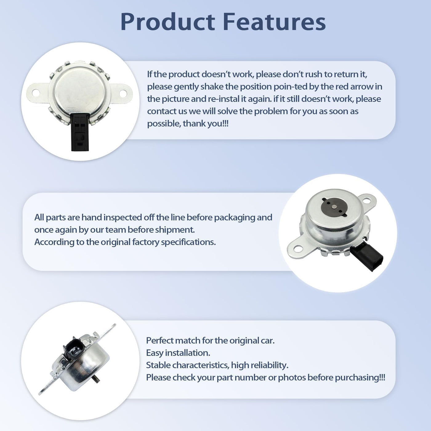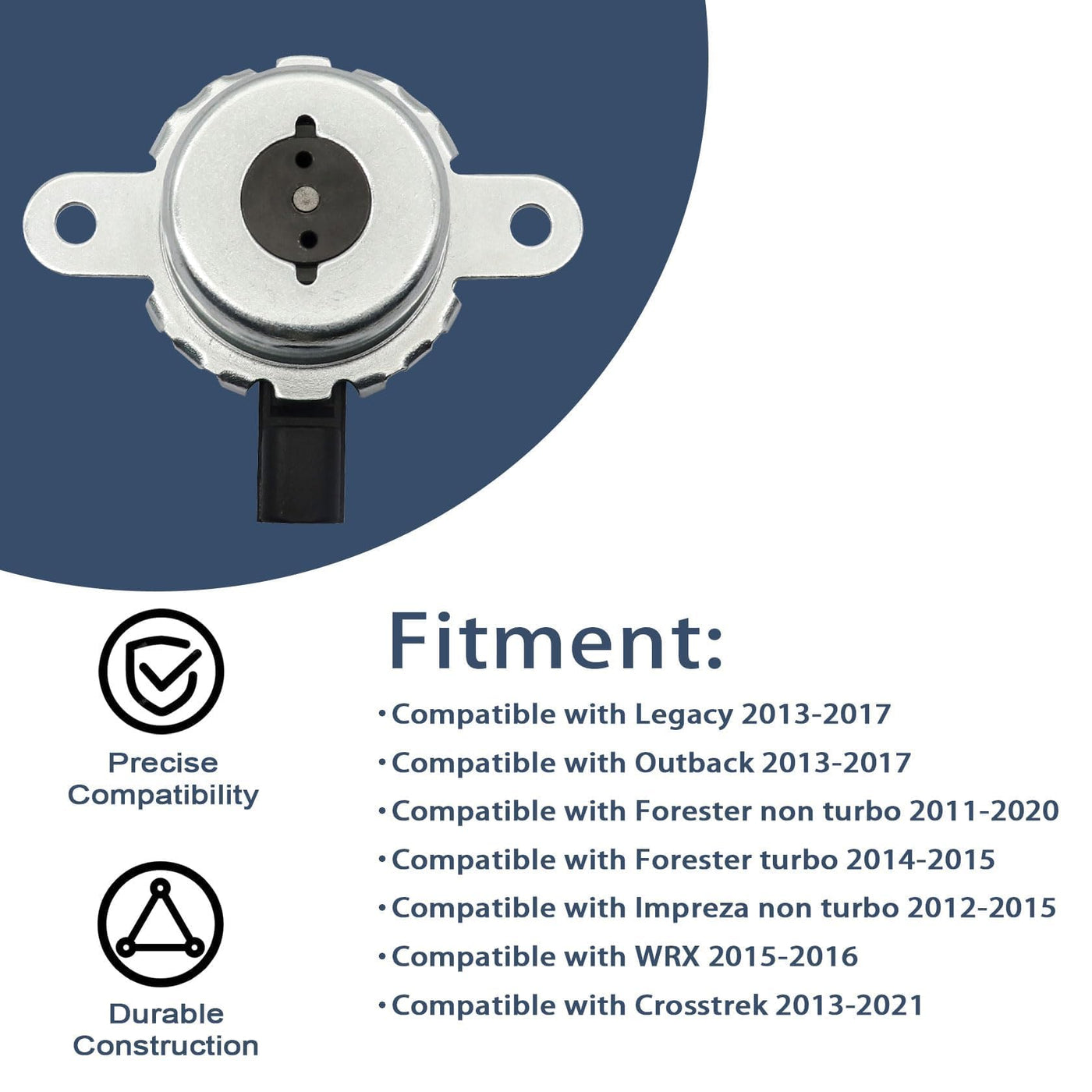 Product DescriptionFeature :1) All parts are hand inspected off the line before packaging and once again by our team before shipment.2) According to the original factory specifications.3) Perfect match for the original car.4) Easy installation.5) Stable characteristics, high reliability.Please check your part number or photos before purchasing!!!Part number :10921-AA230, 10921AA230, 10921 AA23010921-AA220, 10921AA220, 10921 AA22010921-AA231, 10921AA231, 10921 AA23119009210105Fitment :Compatible with Subaru BRZ 2013 2014 2015Compatible with Subaru Legacy 2013 2014 2015 2016 2017Compatible with Subaru Outback 2013 2014 2015 2016 2017Compatible with Subaru Forester non turbo 2011 2012 2013 2014 2015 2016 2017 2018 2019 2020 Compatible with Subaru Forester turbo 2014 2015Compatible with Subaru Impreza non turbo 2012 2013 2014 2015Compatible with Subaru WRX 2015 2016Compatible with Subaru Crosstrek 2013 2014 2015 2016 2017 2018 2019 2020 2021Package list :1 Pc Oil Control Valve Solenoid