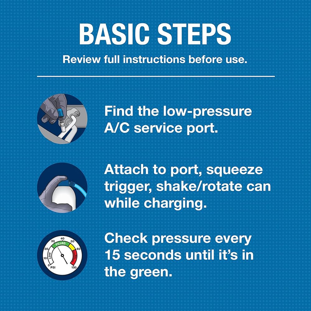 Keep your car's A/C system running efficiently with the Arctic Freeze Auto A/C Recharge Kit. This comprehensive 22 oz kit includes everything needed for a complete A/C system recharge. The kit comes with a gauge assembly and a convenient 1-foot hose for easy access to your vehicle's A/C port. The innovative formula delivers colder air faster, effectively stops leaks, and helps extend your A/C system's lifespan. The included pressure gauge allows for precise monitoring during the recharge process, ensuring optimal refrigerant levels. Whether your car's A/C is blowing warm or just needs a performance boost, this all-in-one solution helps restore comfort to your daily drive. The user-friendly design makes it possible to complete the recharge process without professional assistance, saving time and money on service calls. DO NOT use with vehicles with the low port under the engine.