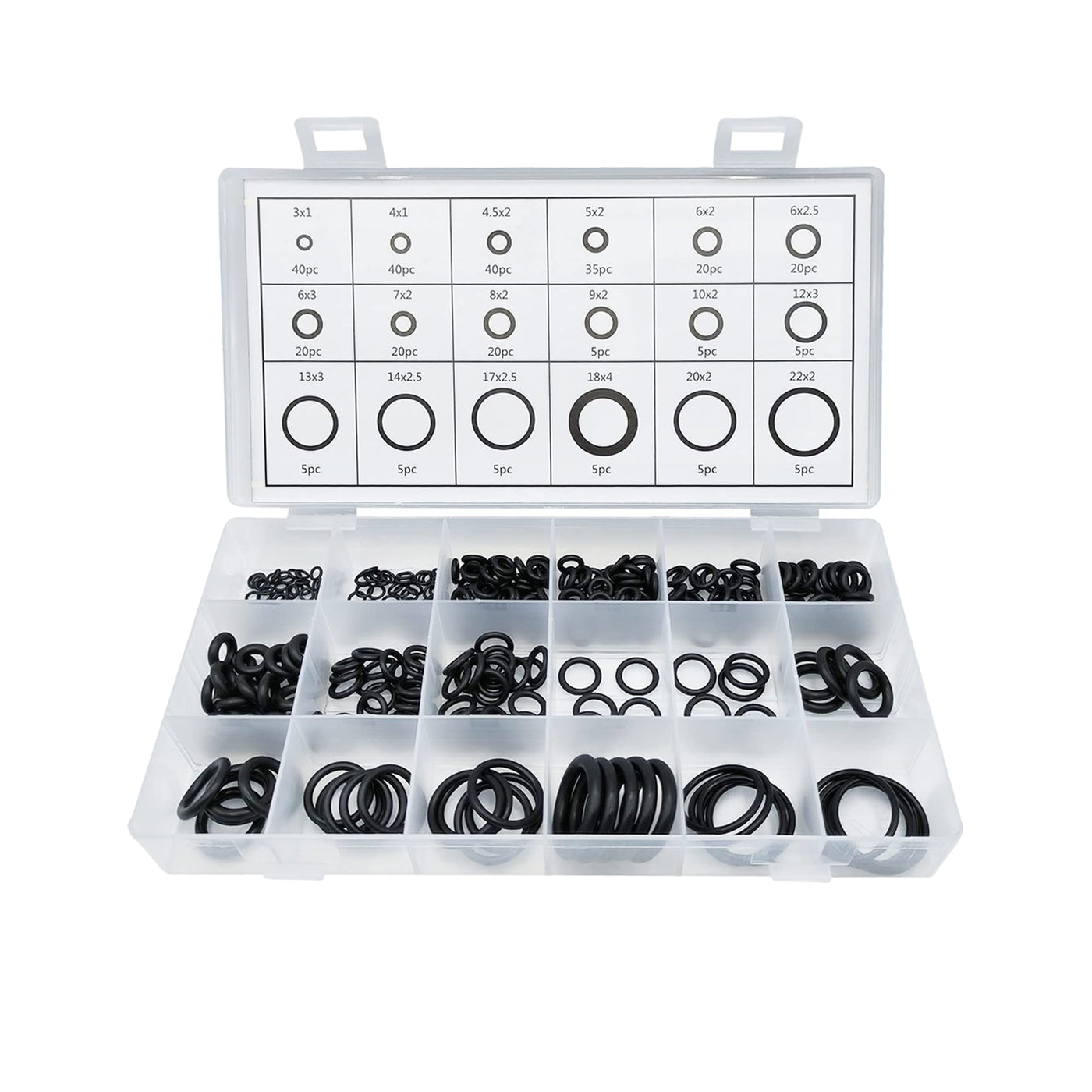 Q: How do I choose the right O-ring size from the kit?A: The kit includes a size table and is organized into 18 separate grid spaces, allowing for easy identification of the appropriate O-ring size you need for your project.