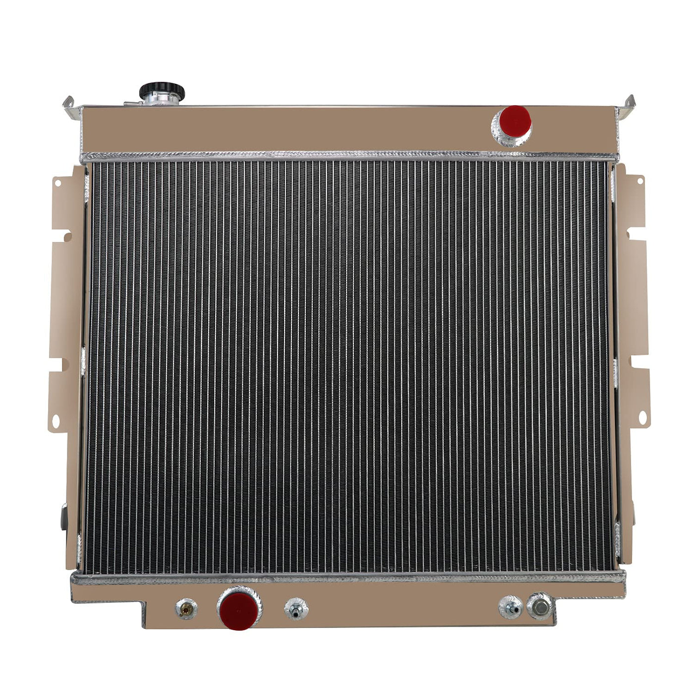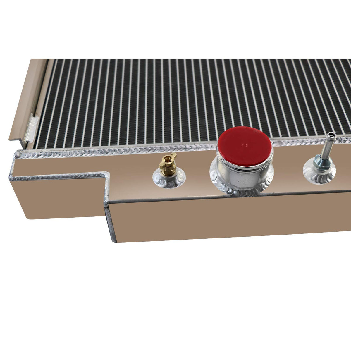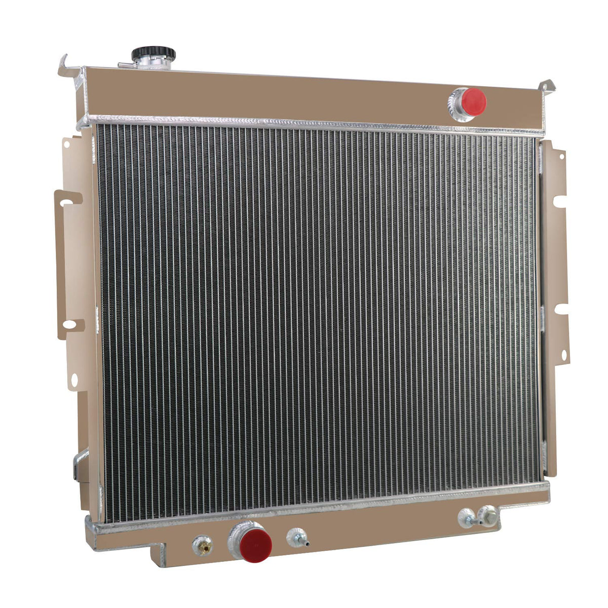 ECMRAD Aluminum Radiator is produced and designed to provide maximum cooling efficiency to prevent engine cooling failure. It is made of full aluminum light-weight, and high-heat transferring aluminum features a tube and fin design that, dramatically increases surface area that enables the heat to dissipate more efficiently. It has an increased durability over the factory plastic end tank radiator, and much inmprovwed engine cooling. Most importantly, it has a much higher capacity for coolant than stock ones, which means that your cooling system will be more efficient and will be more resistant to temperature surges in racing applications. This Aluminum Radiator Compatible for: for 1988-1994 FordF250 F350 Super Duty 6.9L 7.3L V8 Diesel Only for 1988-1994 FordF59 (V8 - 7.3L) for 1984 FordF-150 (V8 - 6.9L) for 1983-1987 FordF-250 (V8 - 6.9L) for 1988-1996 FordF-250 (V8 - 7.3L) for 1983-1987 FordF-350 (V8 - 6.9L) for 1988-1996 FordF-350 (V8 - 7.3L) Radiator Details: Surface finish: Aircraft 5057 grade aluminum tank & core Radiator Cap: CNC machined filler neck and cap Aircraft 5057 grade aluminum and with raw aluminum finish Petcock Drain: OEM style brass petcock drain Package Included: 1 X 4-Core Aluminum Radiator w/ Radiator Cap in a Carton Box