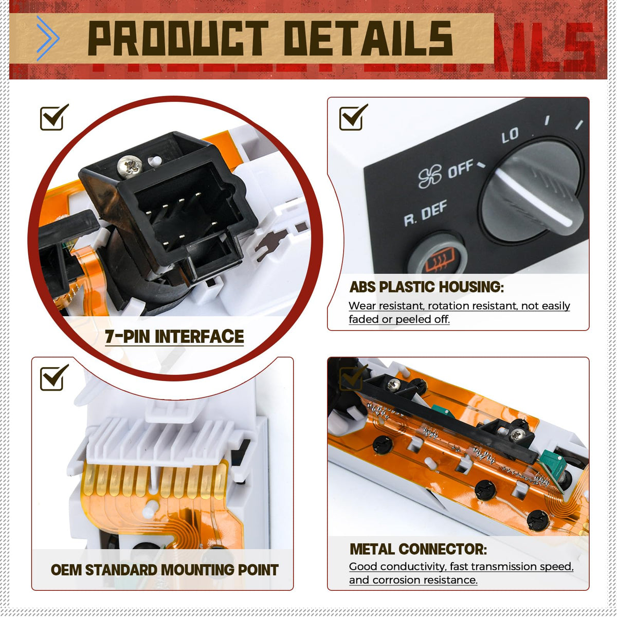 climate control module Escalade accessories accessory Chevy Chevy C1500 Chevy C2500 Chevy C3500 Chevy K1500 Chevy K2500 Chevy K3500 Chevy Suburban Chevy Tahoe GMC C1500 GMC C2500 GMC C3500 GMC K1500 K2500 K3500 GMC Suburban GMC Yukon accessories accessory hvac control module heater control panel ac control panel A/C Heater Climate Control Panel Module Switch W/ Rear Window Defogger For Chevy GMC Truck C1500 C2500 C3500 K1500 K2500 K3500 Tahoe Yukon 96-02 9378805/ 16231165 Application: For Escalade 99-00. For Chevy C1500 96-99. For Chevy C2500 96-00. For Chevy C3500 96-02. For Chevy K1500 96-99. For Chevy K2500 96-00. For Chevy K3500 96-00. For Chevy Suburban 96-99. For Chevy Tahoe 96-00. For GMC C1500 96-99. For GMC C2500 96-00. For GMC C3500 96-00. For GMC K1500 96-99. For GMC K2500 96-00. For GMC K3500 96-00. For GMC Suburban 96-99. For GMC Yukon 96-00. Part Number: 9378805, 16231165, 16238885, 16240105, 599-006, 15-72547. Specification: Function: It can solve poor flow or no air flowing from the vents issues, allowing you to adjust the temperature and wind speed according to your own needs and enjoy comfortable air temperature inside the car. Housing Material: The switch housing is made of ABS plastic, the knob is not easy to break, rotates flexibly, is not easy to fade or fall off, and is wear-resistant and durable. Internal Material: The plug part of this product is made of metal material, with good conductivity, fast transmission speed, and corrosion resistance. Easy To Install: Directly replace, bolts to the stock front bumper with no drilling or alteration of the bumper, does not affect the normal use of air conditioning.