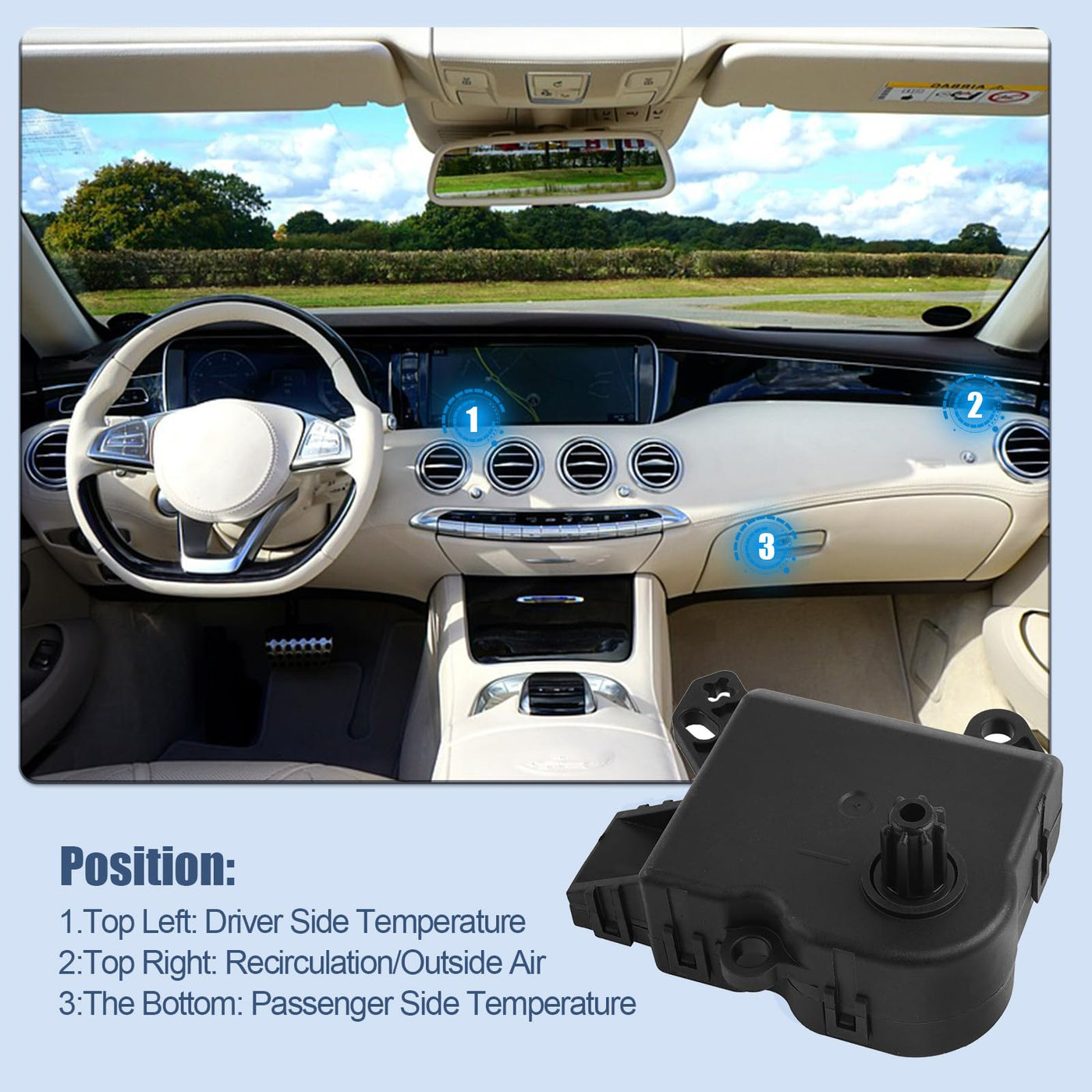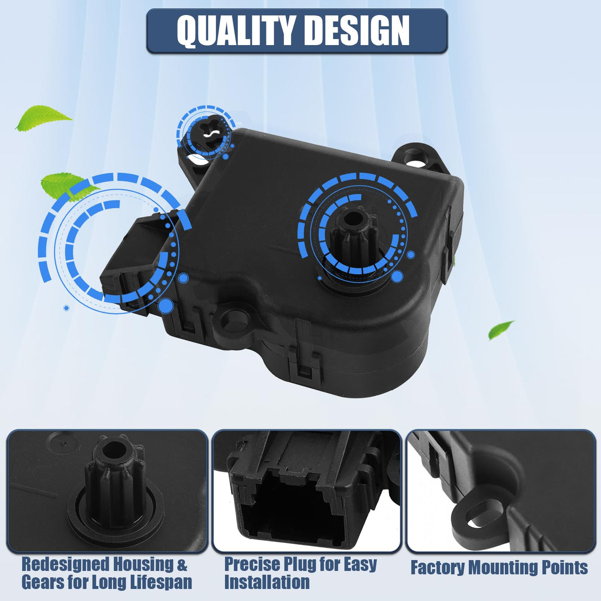 Q: How does the blend door actuator function in my vehicle's HVAC system?A: The blend door actuator controls the air temperature from the AC vents by regulating the flow of air into the vehicle's interior. It plays a crucial role in the HVAC system, ensuring reliable operation and delivering a comfortable temperature for passengers.