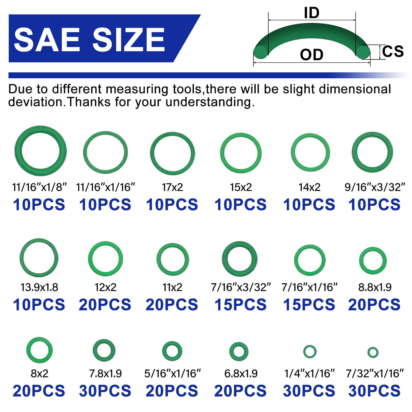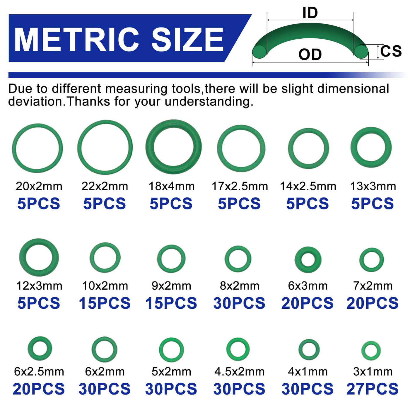 Premium Quality Material: Crafted from duraable green rubber (NBR), these O-rings provide exceptional resistance to oil, heat, and refrigerants, making them ideal for high-temperature applications.