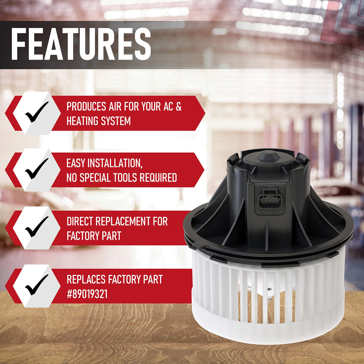 AC Heater Blower Motor HVAC - Compatible with Chevy, GMC, Cadillac Vehicles - Avalanche, Silverado 1500, Tahoe, Suburban, Sierra 2500, Yukon XL, Escalade - Replaces 35143, 1581647, 15-81647, 89019321