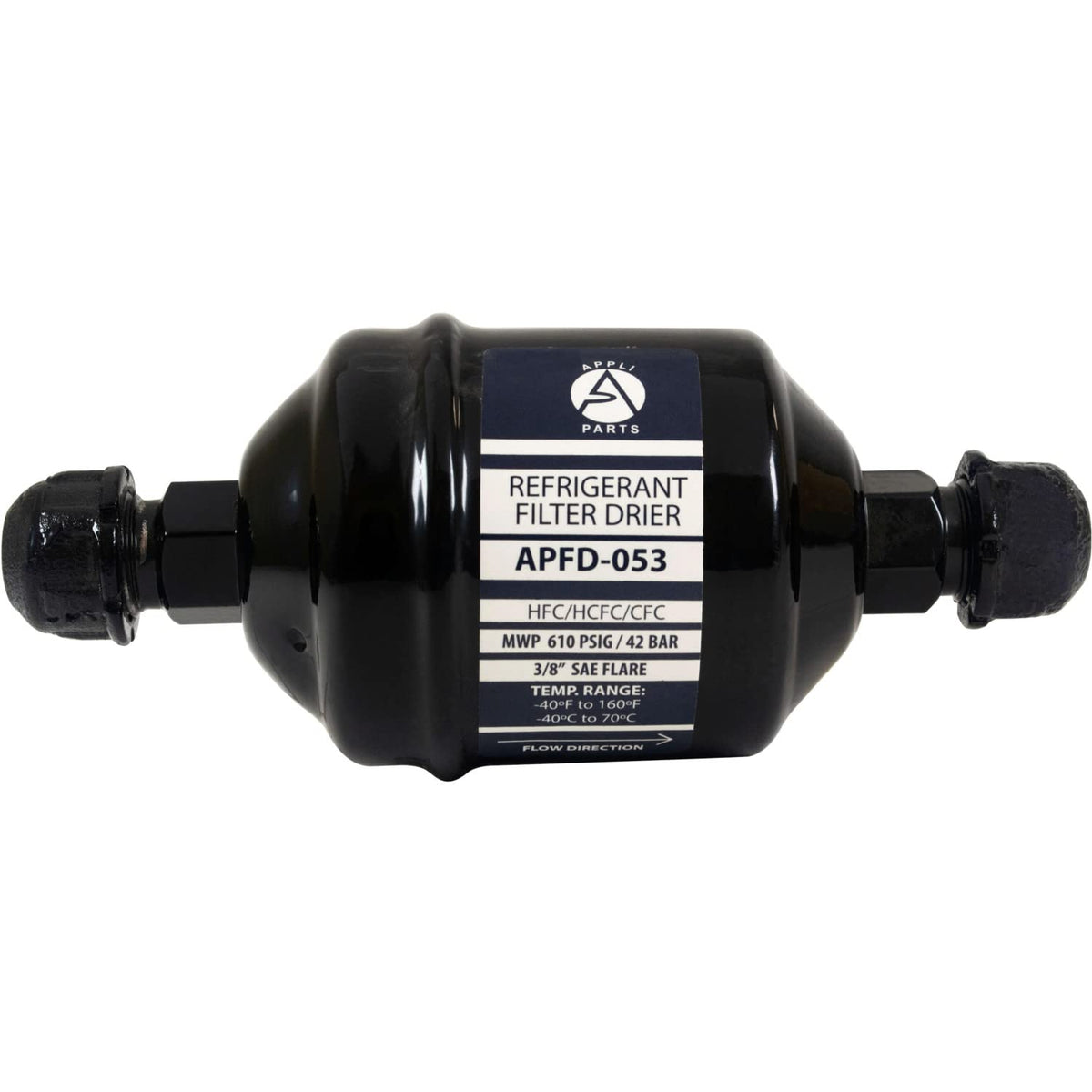 Appli Parts Apfd-053 3/8 In Liquid Line Refrigerant Ac Filter Drier Hvac Refrigeration 053 Sae Flare Connection Universal Unidirectional 4-1/2 In Long 2 In Wideuniversal: Simple Drop-In Replacements For Most Driers Installed In Refrigeration, Air Conditioning And Heat Pump Units Refrigerant Linedetails: Designed To Protect Hvac/R Systems From Acid And Humidity. Max Temperature 160F (70C) Min Temperature -40F (-40C)Core: 100% Solid Molecular Sieve Core To Assure Complete Humidity Removal. Refrigerants: Works With Most Refrigerants Including R1234Yf, R134A, R290, R22, R407C, R404A, R507A, R600 And Many Morereplaces: Dryl053,Adk053,H053,Sd-053,053,C-053,Wah053,16174,Apfd-053Confirm That The Dimensions And Other Attributes Of The Product Closely Match Those Of The Original Item Being Replacedweight : 0.85 Lbrvolume : 0.02350984 Ftqmodel : Apfd-053Upc-Ean : 814245020064