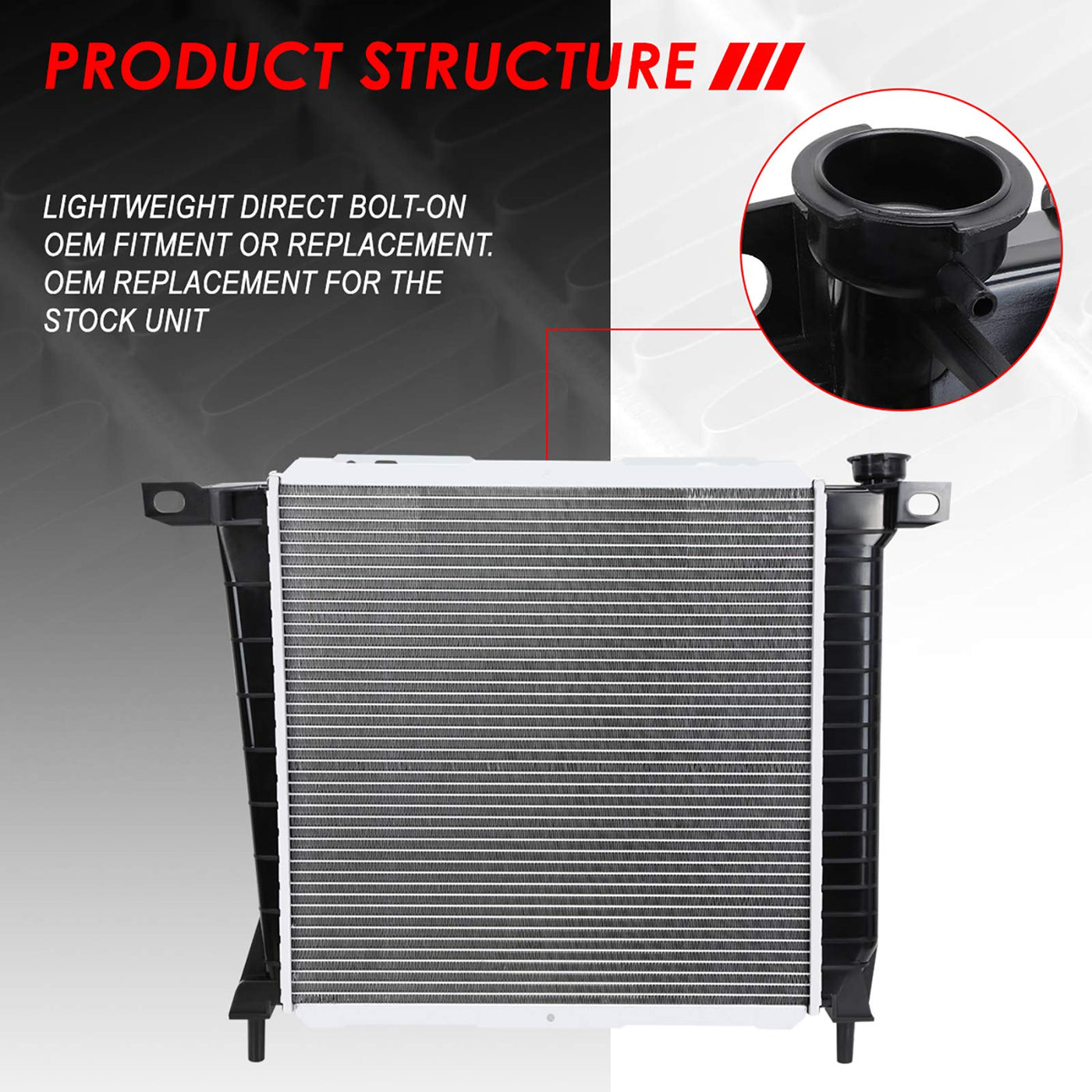 This Aluminum Core Radiator is designed to provide maximum cooling efficiency to prevent premature engine failure. Its lightweight, and high-heat transferring aluminum features a tube and fin design that, dramatically increases surface area that enables the heat to dissipate more efficiently.Package Included:1 X RadiatorThis product is compatible with:Compatible with Ford Ranger 2.8L 2.9L 3.0L 4.0L 1985-1994Compatible with Ford Bronco II 2.8L 2.9L 1985-1990Compatible with Ford Explorer 4.0L 1991-1994Compatible with Maz Navajo 4.0L 1991-1994Compatible with Maz B3000 3.0L 1994Compatible with Maz B4000 4.0L 1994Fits Manual Transmission Models Only