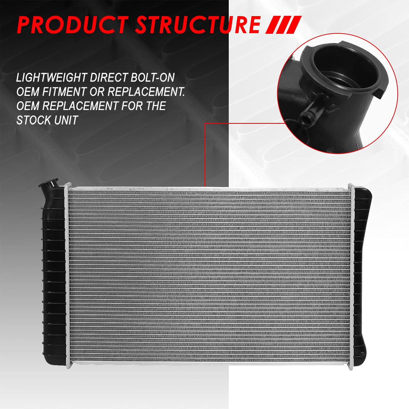 This Aluminum Core Radiator is designed to provide maximum cooling efficiency to prevent premature engine failure. Its lightweight, and high-heat transferring aluminum features a tube and fin design that, dramatically increases surface area that enables the heat to dissipate more efficiently.Package Included:1 X RadiatorThis product is compatible with:Compatible with most Buick Cadillac Chevy GMC Plymouth Oldsmobile Pontiac models 1968-1990Please see fitment chart for exact fitmentsNotes:OEM Part Number: 3005823 3009928 3009929 3010145 3014623Parkslink Number: 161 8010322