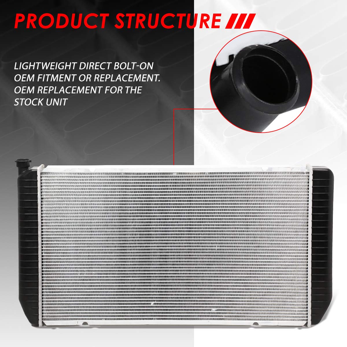 This Aluminum Core Radiator is designed to provide maximum cooling efficiency to prevent premature engine failure. Its lightweight, and high-heat transferring aluminum features a tube and fin design that, dramatically increases surface area that enables the heat to dissipate more efficiently.Package Included:1 X RadiatorThis product is compatible with:Compatible with Chevy/GMC C2500 K2500 1991-2000Compatible with Chevy/GMC C2500 K2500 Suburban 1992-1999Compatible with Chevy/GMC C3500 K3500 1988-2000Fits Models with 7.4L EngineFits Automatic Transmission Models