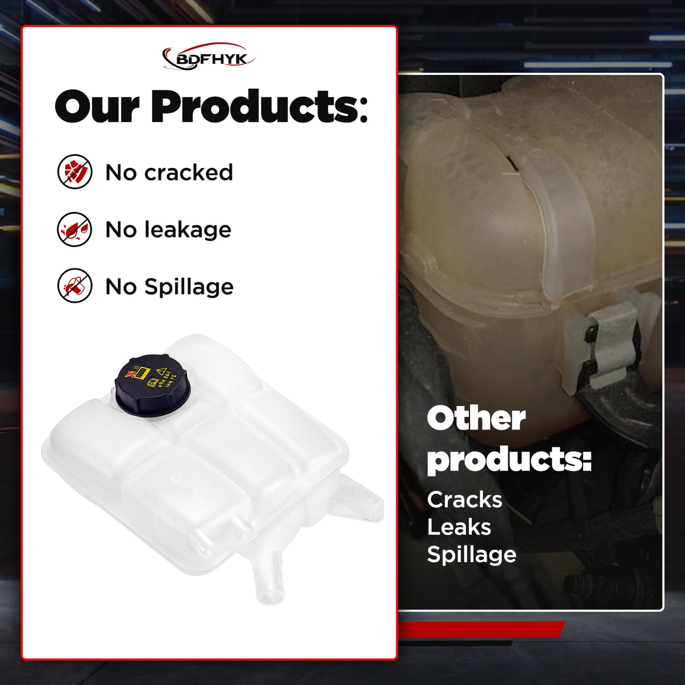 Q: How does the BDFHYK coolant reservoir compare to other brands?A: The BDFHYK Engine Coolant Expansion Reservoir is manufactured with OE-grade durability, ensuring high-quality performance compared to other brands. It is designed specifically for compatibility with select Ford models, making it a reliable choice for automotive enthusiasts.