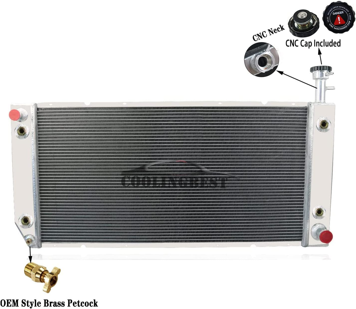 Compatible with: 2004-2016 Chevy Express 2500/3500 4.8L/6.0L 2009-2016 Chevy Express 4500 6.0L 2004-2016 GMC Savana 2500/3500 4.8L/6.0L 2009-2016 GMC Savana 4500 4.8L/6.0L Fits Automatic Transmission models with Engine Oil Cooler Radiator Details: Type: 4 Core Core Thickness: 2.44'' Core/ Tank Material: All Aluminum Upgraded Cap: CNC Machined Filler Neck and Cap Upgraded Drain Plug: OEM Style Brass Petcock Drain Dual Oil Cooling Delivery: Local Delivery Fitment Type: Direct Replacement Style: Crossflow Performance: Up to 35%-45% Cooling OE/OEM Part Number: CU2791,2791,8012791,GM3010483,DPI2791,KKS2791 COOLINGBEST Radiador: 1. Made from Aircraft T-5052 grade aluminum for prolonged lifespanand with raw aluminum finish 2. Brazed core technology to guarantee optimum performance and dependability 3. All T-5052 Aluminum 2mm thick tanks and fittings,Ensure it's hard and durable 4. Billet Aluminum CNC machined fill neck rugged and durable 5. 16lbs ergonomic design CNC machined cap with Engraved craftsmanship, anodized treatment. 6. Carefully crafted to exceptional OE standards for precise fit. About us: If there is something wrong with your purchase please let us know and we will do all in our power to fix the issue to you. Thank you for your cooperation.