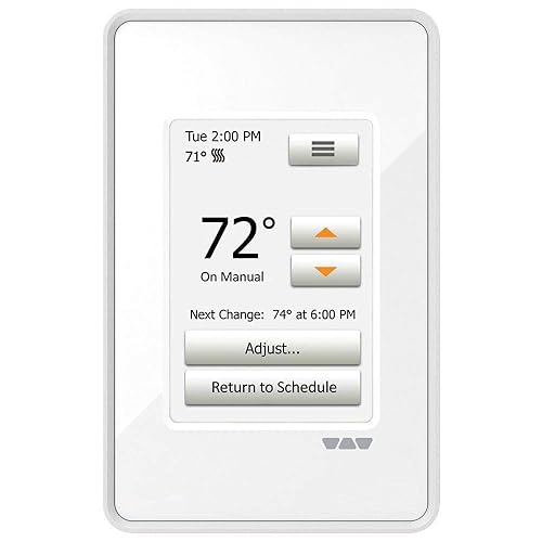 Q: How does the touchscreen functionality enhance user experience?A: The 3.5” intuitive touchscreen display allows for easy navigation and programming, making it simple to set up and adjust heating schedules with up to 6 programming periods per day.