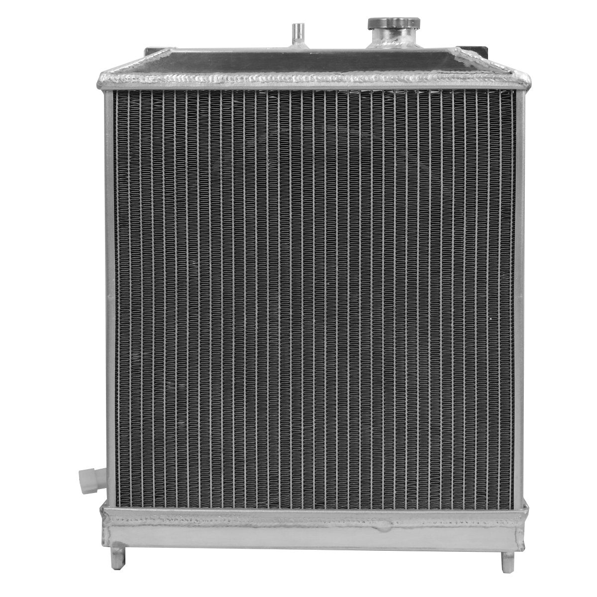 Q: What makes this radiator a better choice than stock options?A: This radiator is at least 40% more efficient than stock radiators, offering a higher capacity for coolant. The included fan and fan shroud effectively manage heat by directing it out of the engine compartment, providing better temperature control and reducing the risk of overheating during racing applications.