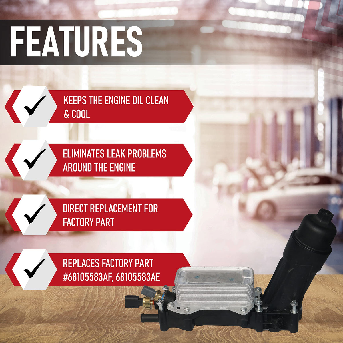 Engine Oil Cooler and Filter Housing Adapter Kit - Replaces 68105583AF, 68105583AE - Compatible with Chrysler, Dodge & Jeep 3.6L