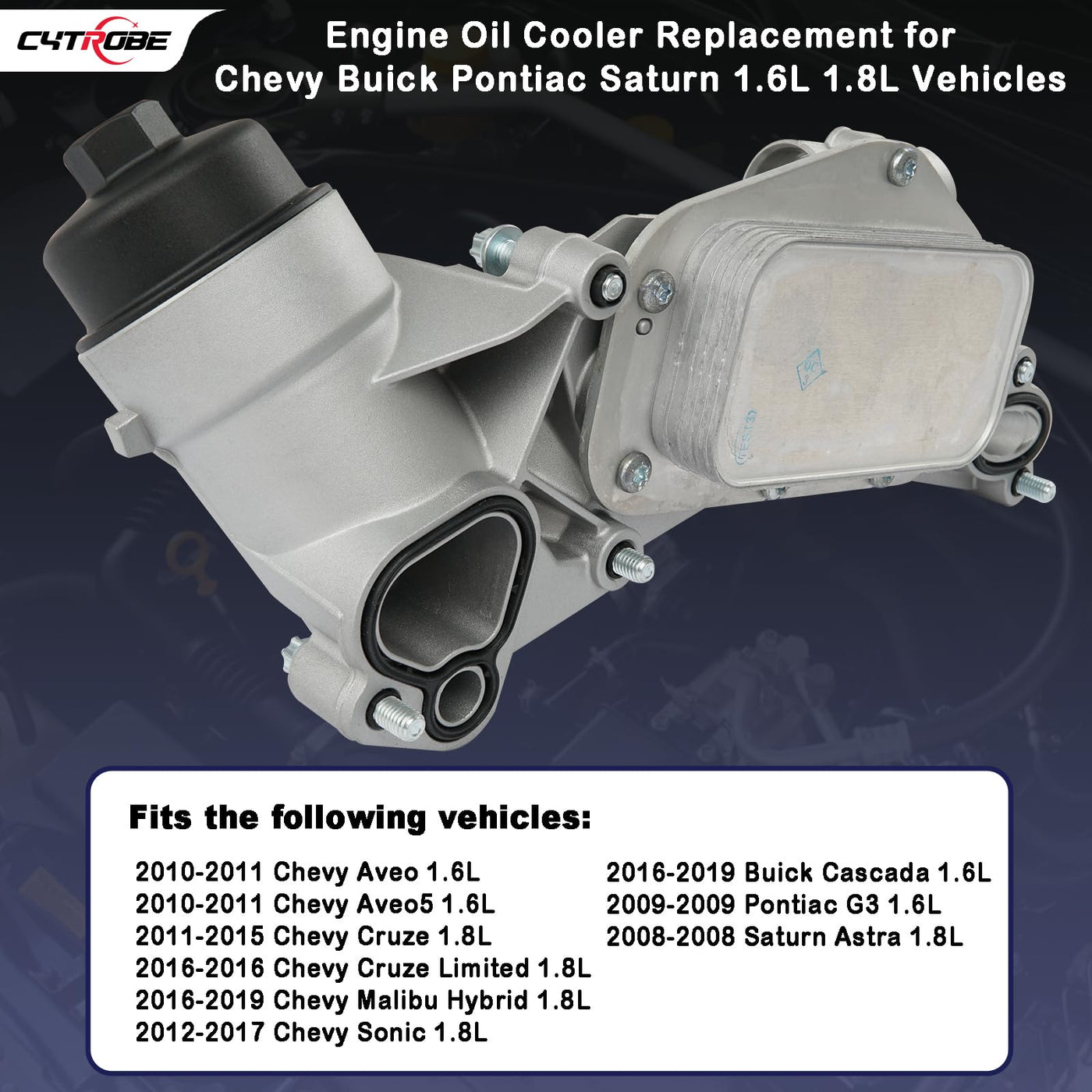 Engine Oil Cooler Filter Housing Assembly Adapter with Gasket, Insert, Cap Compatible with 2008-2019 Chevy Cruze Sonic Malibu Av