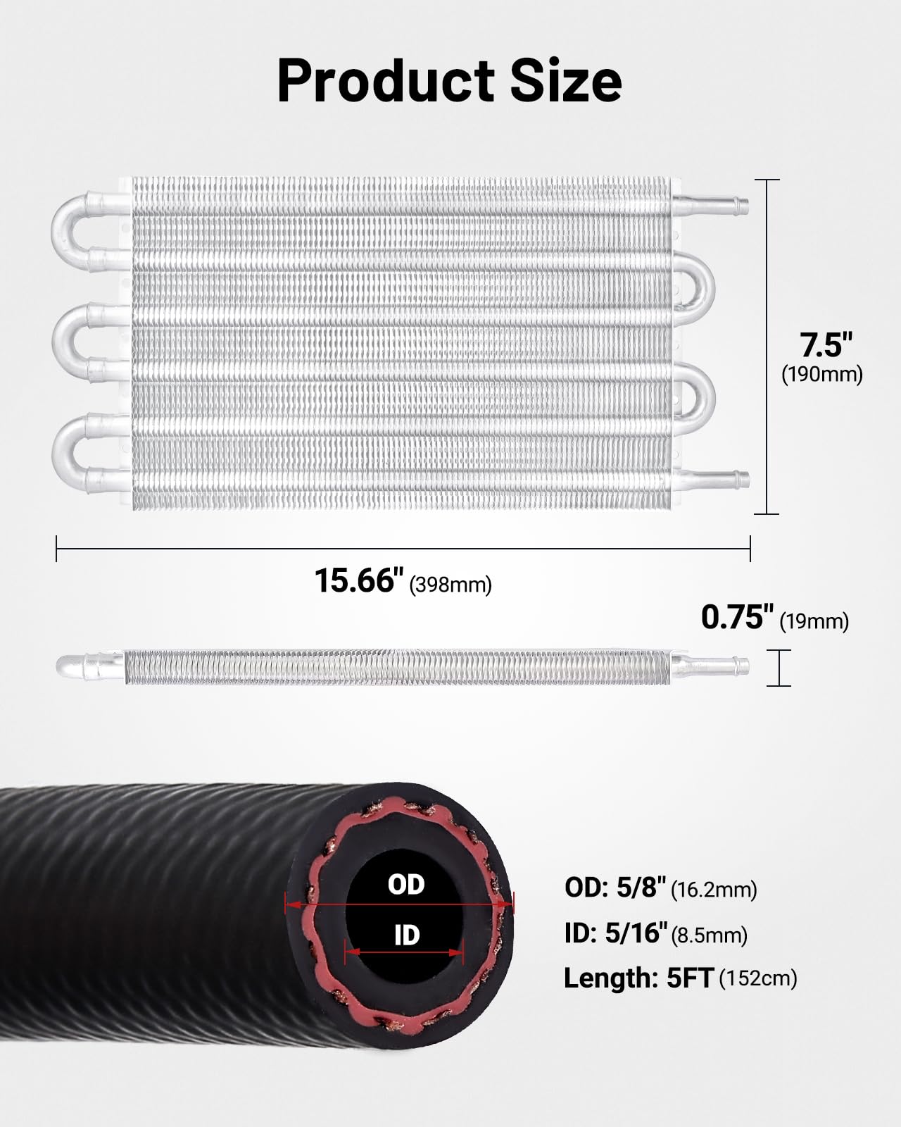 Evil Energy 5/16'' Transmission Oil Cooler, 6 Pass Tube And Fin Cooler Kit Universal Aluminium Silver