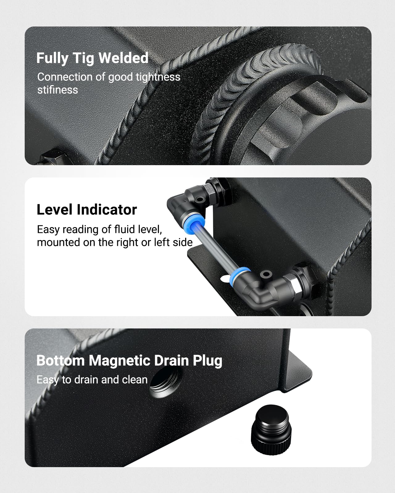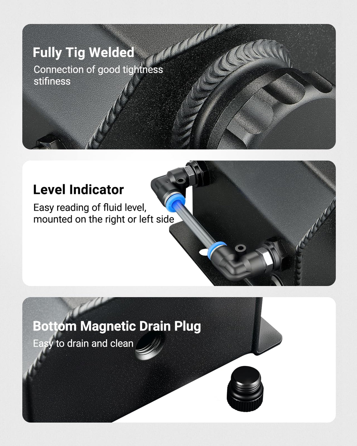 Evil Energy Is Our Brand, We'Re A Direct And Professional Manufacturer, One Of Greatest Manufacturer And Exporter In Tuning Parts Include Intake System, Exhaust System, Fuel System, Cooling System, Interior And Exterior Parts.Made Of Aluminum Alloy 6061-T6,Sealing Cap, Fully Tig Welded And Thread Come With O-Ring Gasket, Let Coolant Reservoir Can Keep A Good Closed Environment And Prevent Coolant Leakage.Switchable Inlet/Outlet And Level Indicator Can Be Placed Either On The Right Or Left Hand Side Of The Overflow Can Magnetic Drain Plug At The Bottom For Easy Draining And Cleaning.