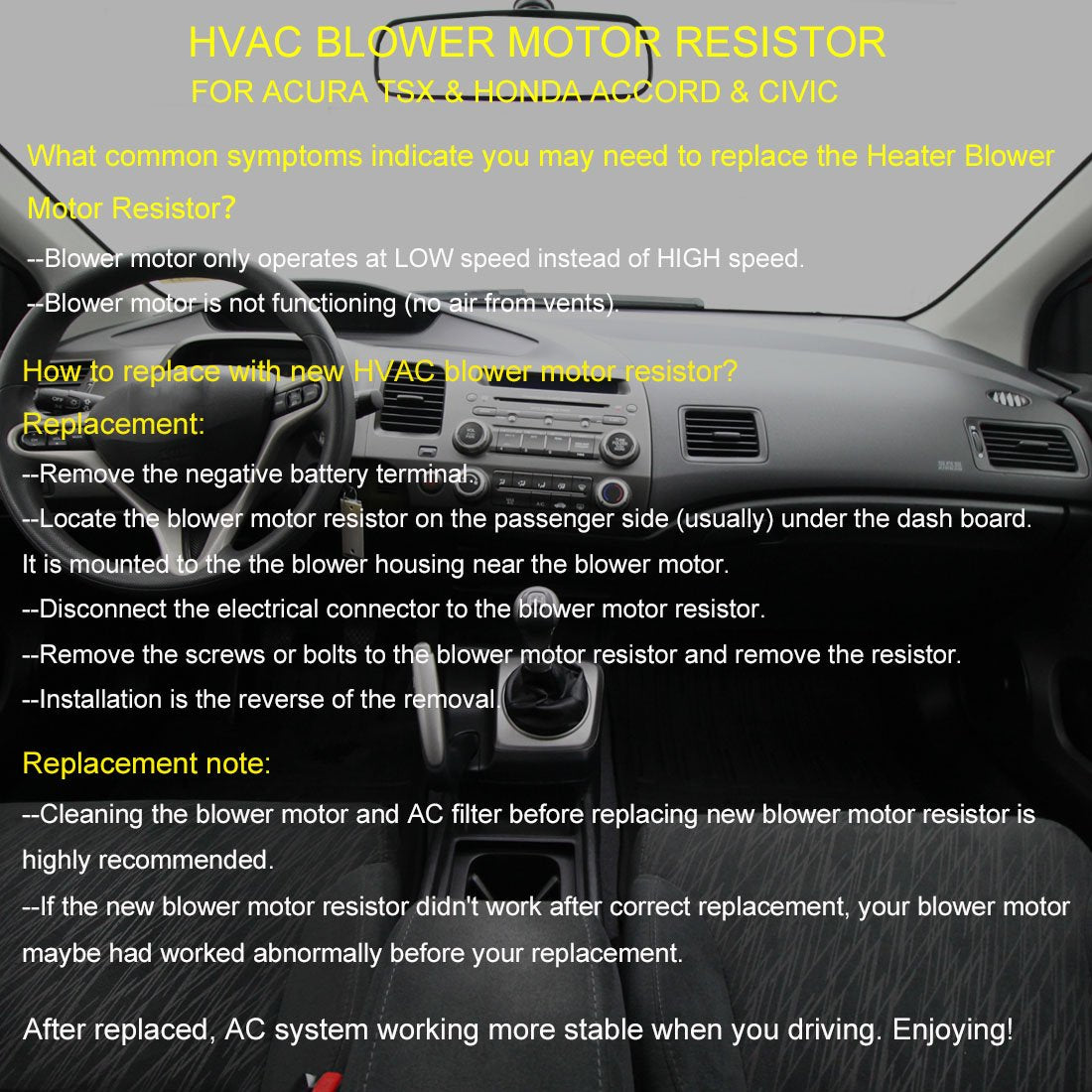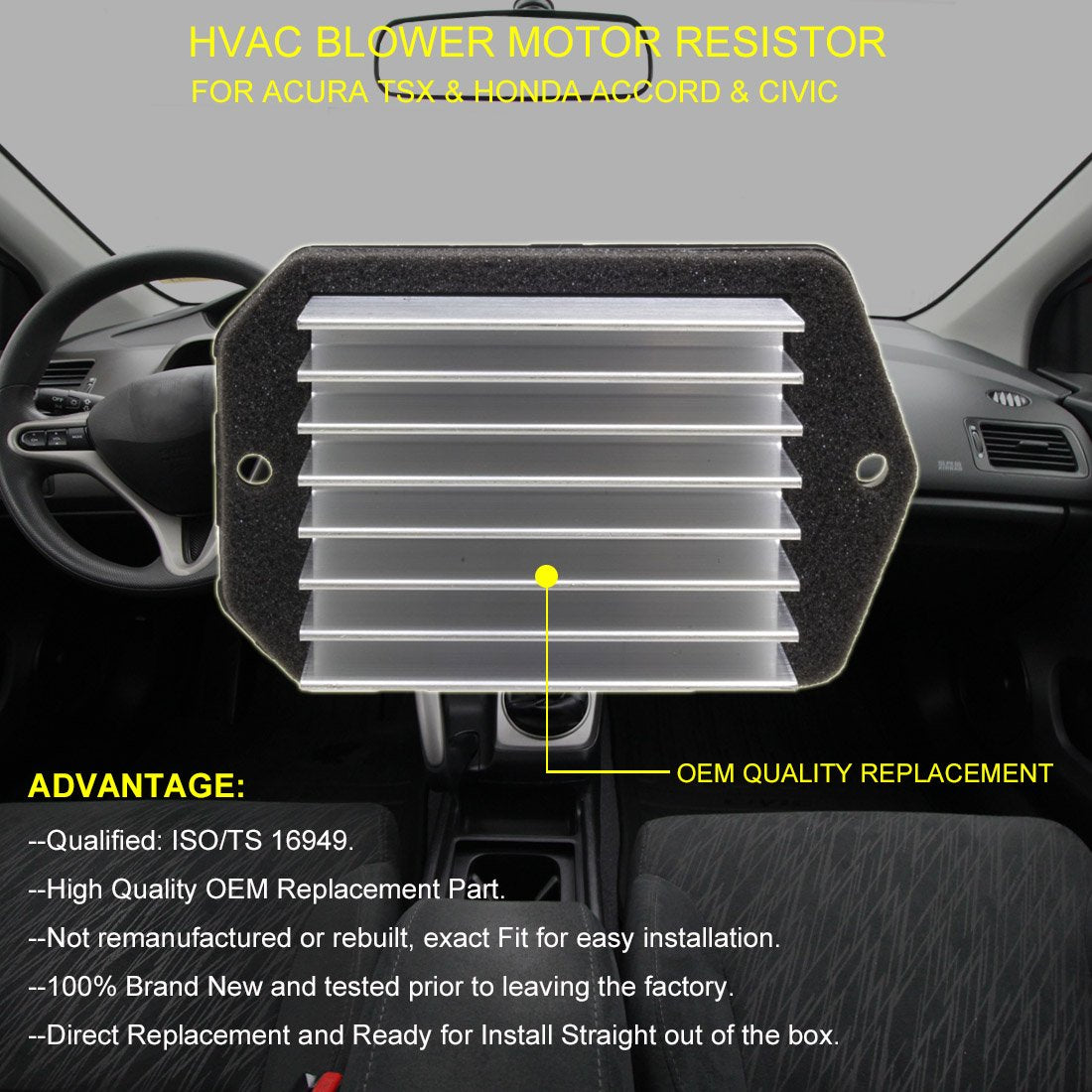 HVAC Fan Blower Motor Resistor Replacement for 2004-2008 Acura TSX 2003-2006 Honda Accord 2006-2008 Honda Civic 2005-2010 Honda Odyssey 2009 Honda Pilot Replaces RU-398, 79330SDRA01, 79330SDAA01