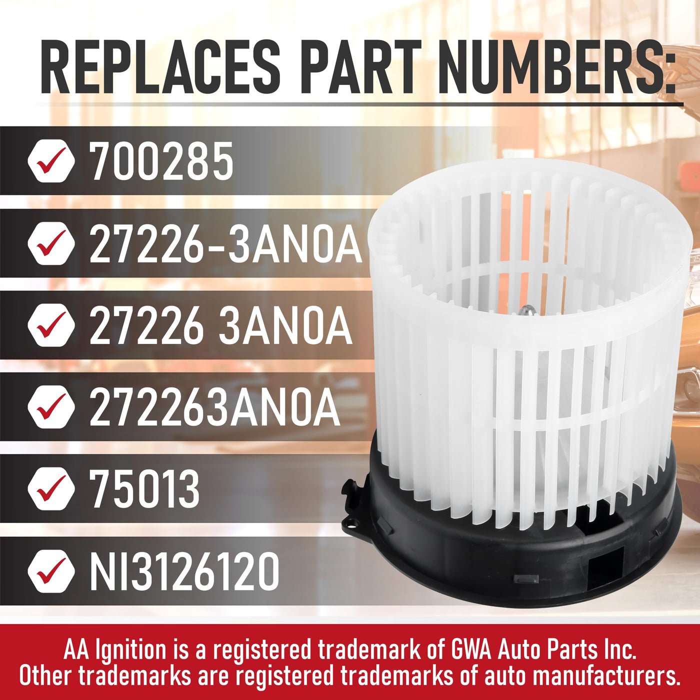 Hvac Heater Blower Motor With Fan Assembly By Aa Ignition - Compatible With Nissan Vehicles - 2012-2018 Versa & 2014-2017 Versa
