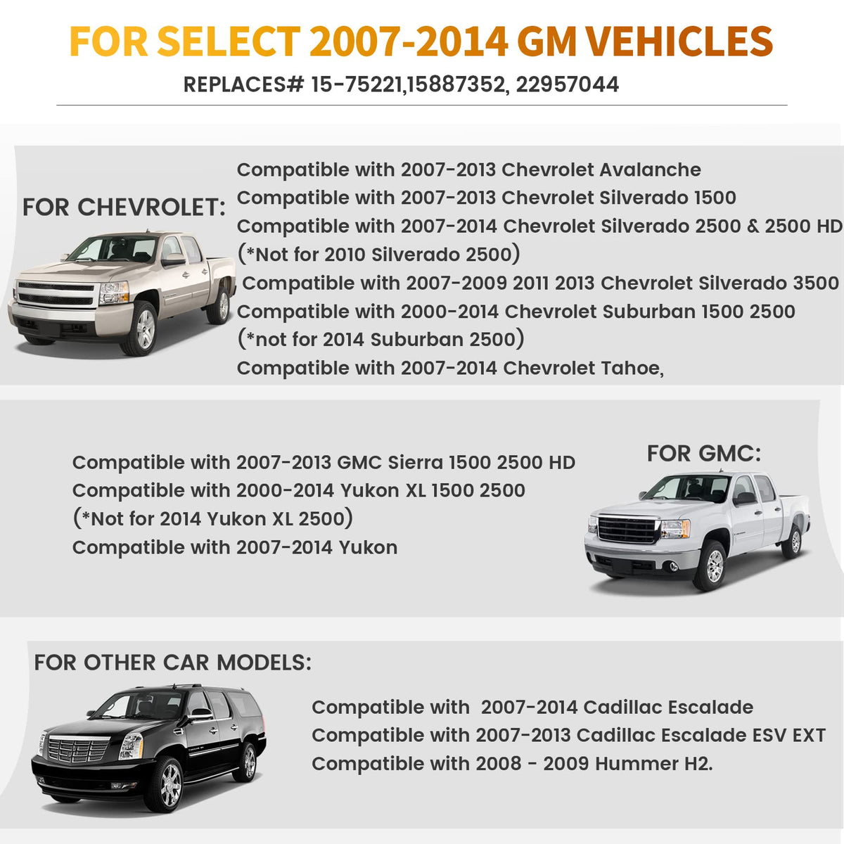 Q: What vehicles are compatible with the MECMO 15-75221 Blower Motor Wiring Harness?A: The MECMO 15-75221 Blower Motor Wiring Harness is compatible with various GM models including the 2007-2014 Chevrolet Tahoe, Suburban, Silverado, Avalanche, GMC Sierra, Buick Yukon, and Cadillac Escalade. It also fits specific years of the Hummer H2.