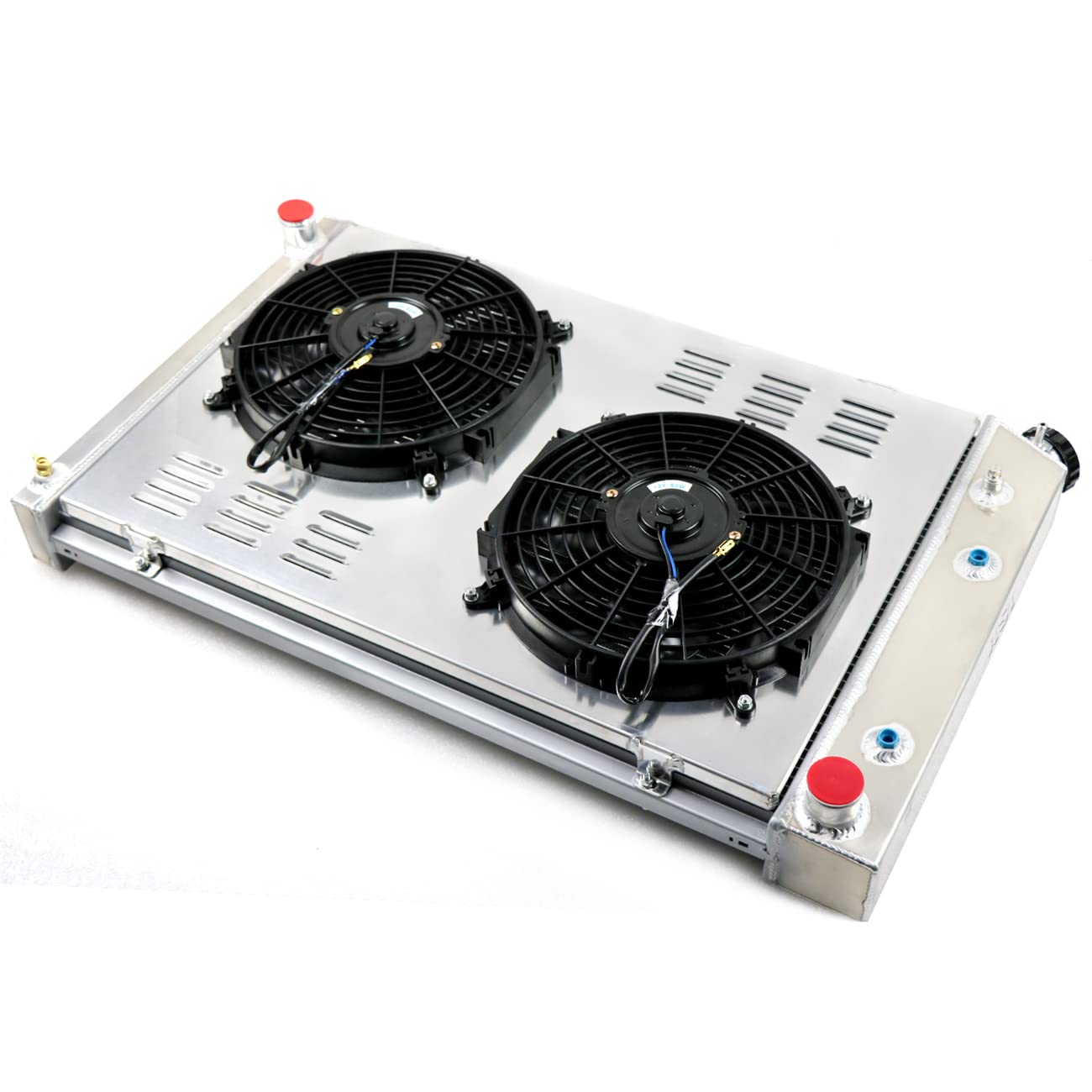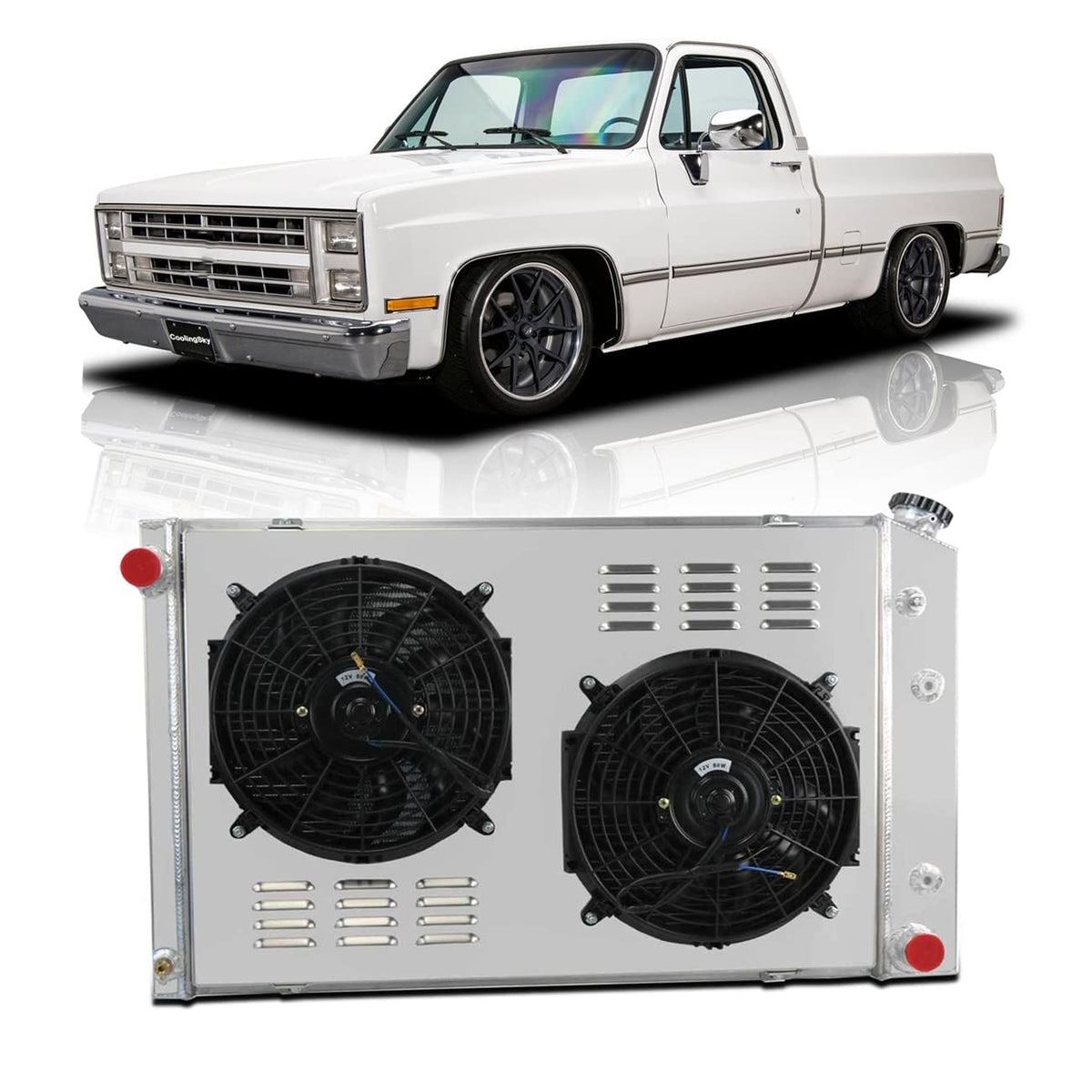 Primecooling 56Mm 3 Row Core Aluminum Radiator +2X12'' Fan +Shroud For Chevrolet Gmc C/K Series Pickup & Trucks 1973-91