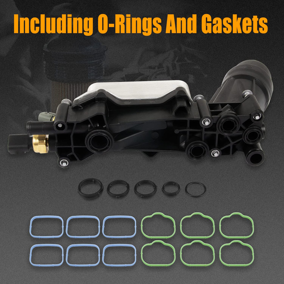 RANSOTO Engine Oil Cooler With Oil Filter Housing Adapter Compatible With 2014 2015 2016 2017 Chrysler 200 300, Dodge Avenger Jo