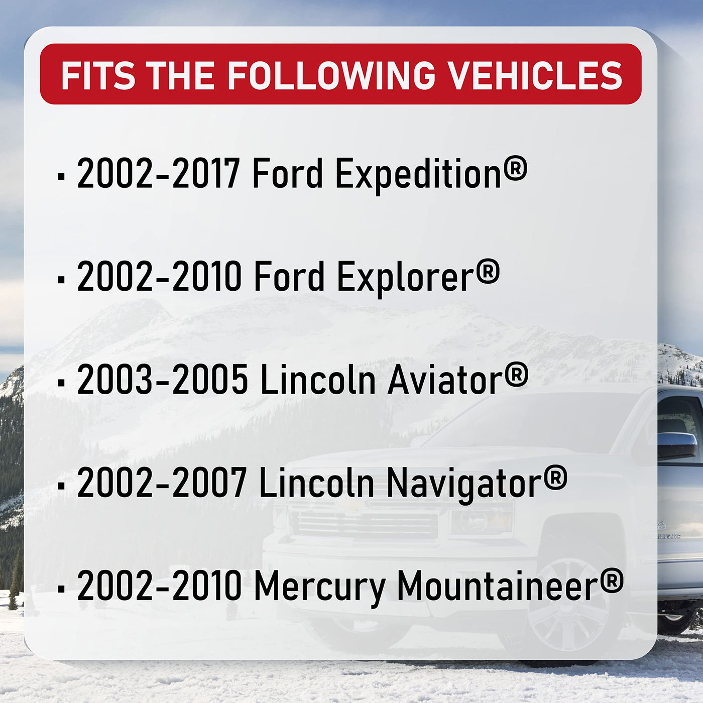 Q: Which vehicles is this blend door actuator compatible with?A: This blend door actuator is compatible with Ford, Lincoln, and Mercury SUVs, specifically models like the 2002-2017 Expedition, 2002-2010 Explorer, 2002-2010 Mountaineer, 2003-2005 Aviator, and 2002-2007 Navigator.
