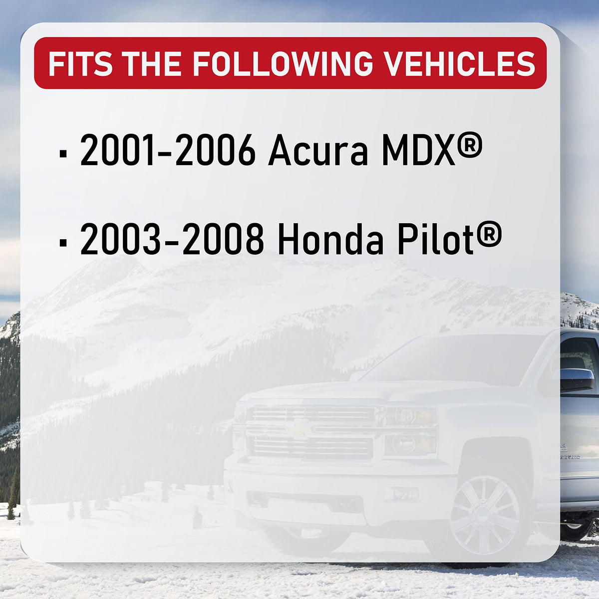 This replacement blower motor resistor for the rear air conditioning system of your Pilot or MDX controls the fan speed in your AC and heating system. If you can no longer adjust the air speed with your AC controls or your air conditioner system no longer blows chances are you need a new Blower Motor Resistor. Fits the following vehicles: MDX 2001, 2002, 2003, 2004, 2005, 2006 Pilot 2003, 2004, 2005, 2006, 2007, 2008 Replaces part numbers: JA1626, 79330 S3V A51, 973-548, 4P1493, 79330S3VA51, 973548, JA1626 This is a compatible replacement part manufactured by AA Ignition. This blower motor resistor is NOT a genuine OEM part. Vehicle makes and their associated vehicle models are registered trademarks of their respective owners. These trademarks and part numbers are used in this listing only to identify the vehicles this blower motor resistor fits. AA Ignition is a registered trademark of GWA Auto Parts Inc.