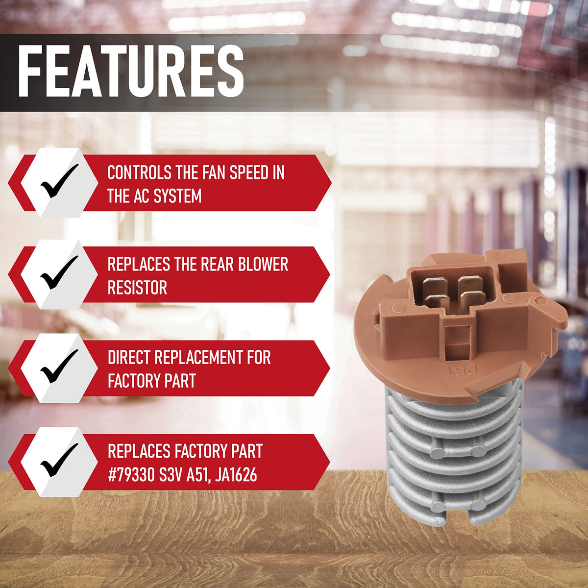 Rear Hvac Blower Motor Resistor - Replaces Ja1626, 79330 S3V A51, 973-548, 4P1493, 79330S3Va51 - Compatible With Honda Pilot 200