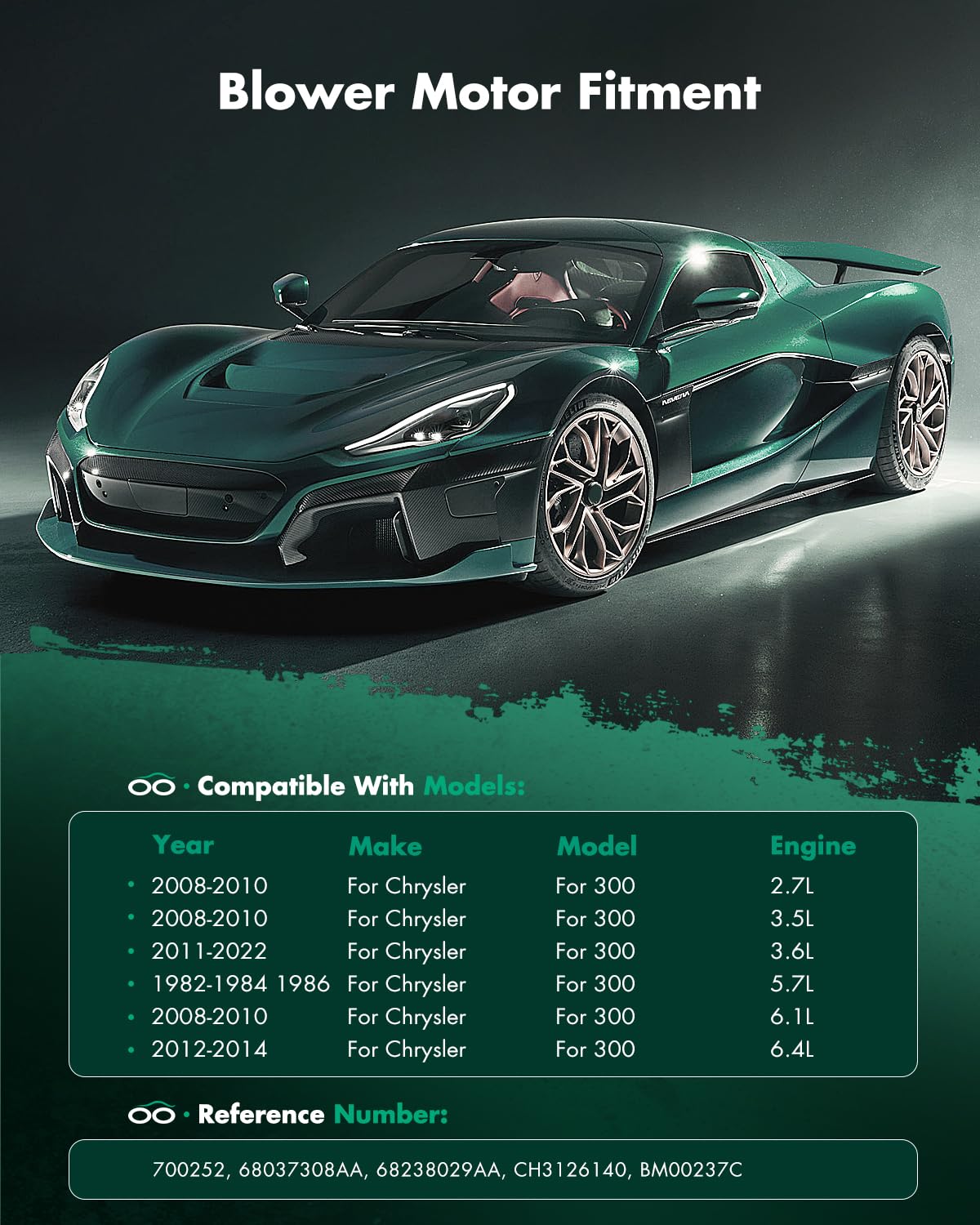 Vehicles Fitment:2008-2010 For Chrysler For 300 V6 2.7L2008-2010 For Chrysler For 300 V6 3.5L2011-2022 For Chrysler For 300 V6 3.6L2008-2012 2014-2019 2021-2022 For Chrysler For 300 V8 5.7L2008-2010 For Chrysler For 300 V8 6.1L2012-2014 For Chrysler For 300 V8 6.4L2009-2010 For Dodge For Challenger V6 3.5L2011 2013-2022 For Dodge For Challenger V6 3.6L2009-2022 For Dodge For Challenger V8 5.7L2008-2010 For Dodge For Challenger V8 6.1L2015-2022 For Dodge For Challenger V8 6.2L2011-2022 For Dodge For Challenger V8 6.4L2008-2010 For Dodge For Charger V6 2.7L2008-2010 For Dodge For Charger V6 3.5L2011-2022 For Dodge For Charger V6 3.6L2008-2022 For Dodge For Charger V8 5.7L2008-2010 For Dodge For Charger V8 6.1L2015-2022 For Dodge For Charger V8 6.2L2012-2022 For Dodge For Charger V8 6.4L2008 For Dodge For Magnum V6 2.7L2008 For Dodge For Magnum V6 3.5L2008 For Dodge For Magnum V8 5.7L2008 For Dodge For Magnum V8 6.1L