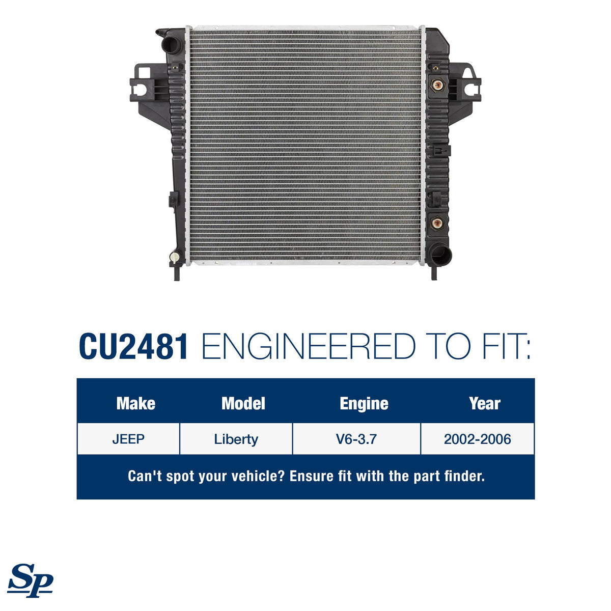 Q: Is the Spectra Premium CU2481 radiator compatible with my 2002-2006 Jeep Liberty?A: Yes, the Spectra Premium CU2481 radiator is specifically designed to be compatible with the 2002-2006 Jeep Liberty V6 3.7L, ensuring a perfect fit and optimal performance.