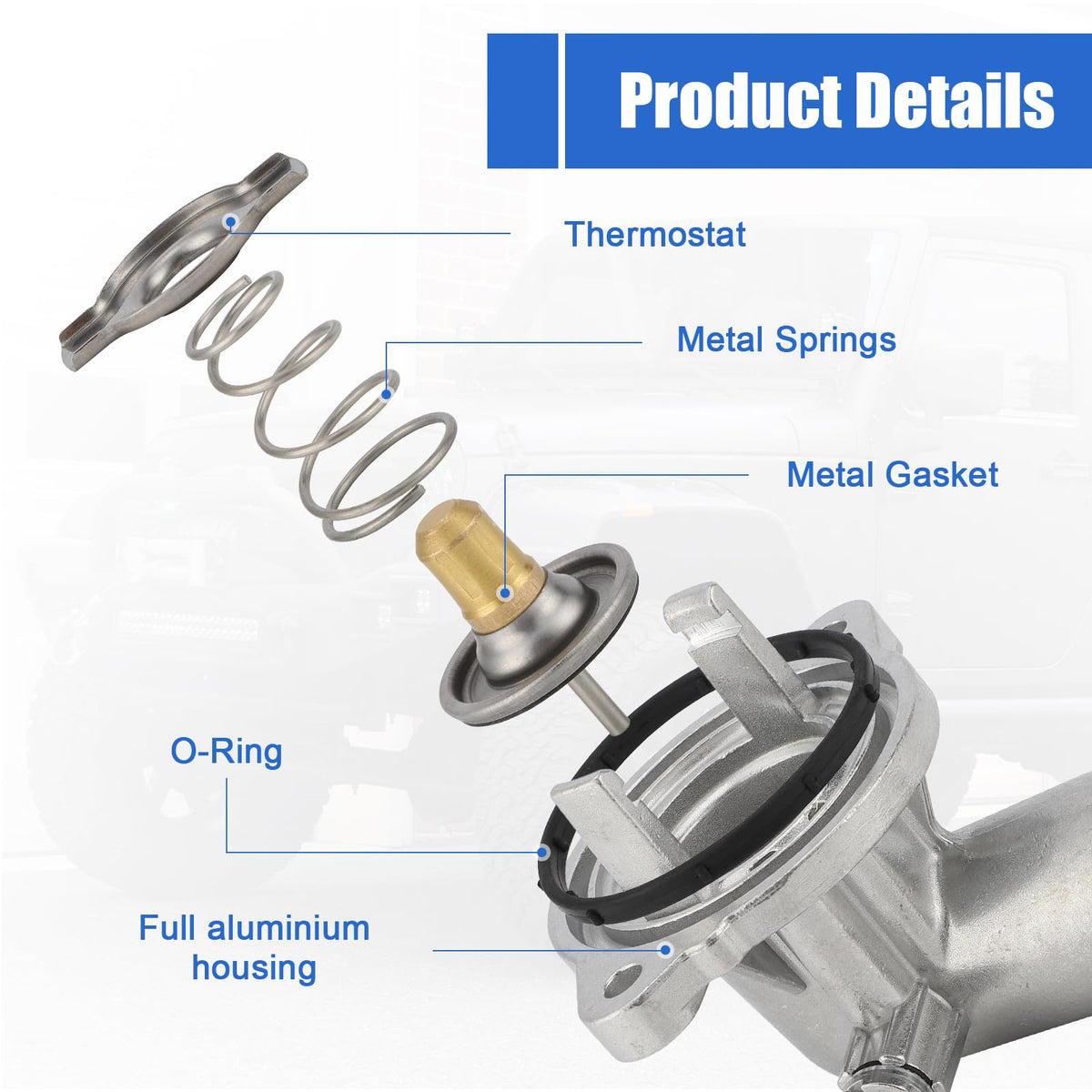 Upgrade Aluminum Thermostat & Housing Assembly for Jeep Grand Cherokee 2011-2015 Wrangler 2012-2017 Wrangler JK 2018, Dodge Dura
