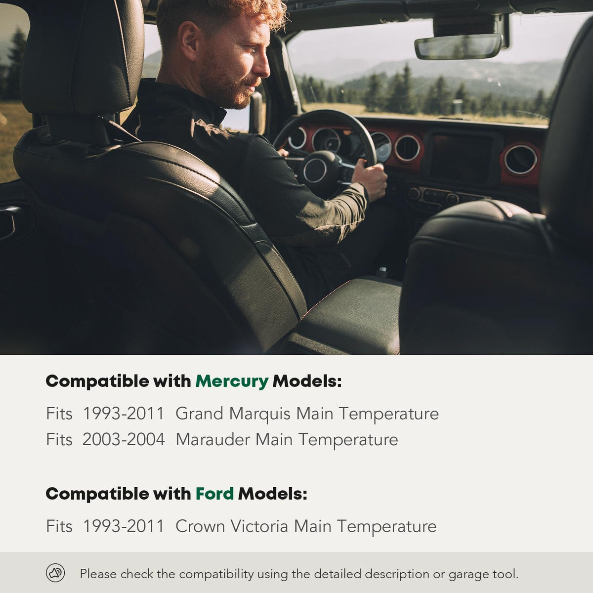 Fitment: Fits for Ford Crown Victoria 1993-2011 Main Manual Temperature Actuator Fits for Ford Grand Marquis 1993-2004 Main Manual Temperature Actuator, Bulit in Mexico Fits for Mercury Grand Marquis 1993-2011 Main Manual Temperature Actuator Fits for Mercury Marauder 2003-2004 Main Manual Temperature Actuator